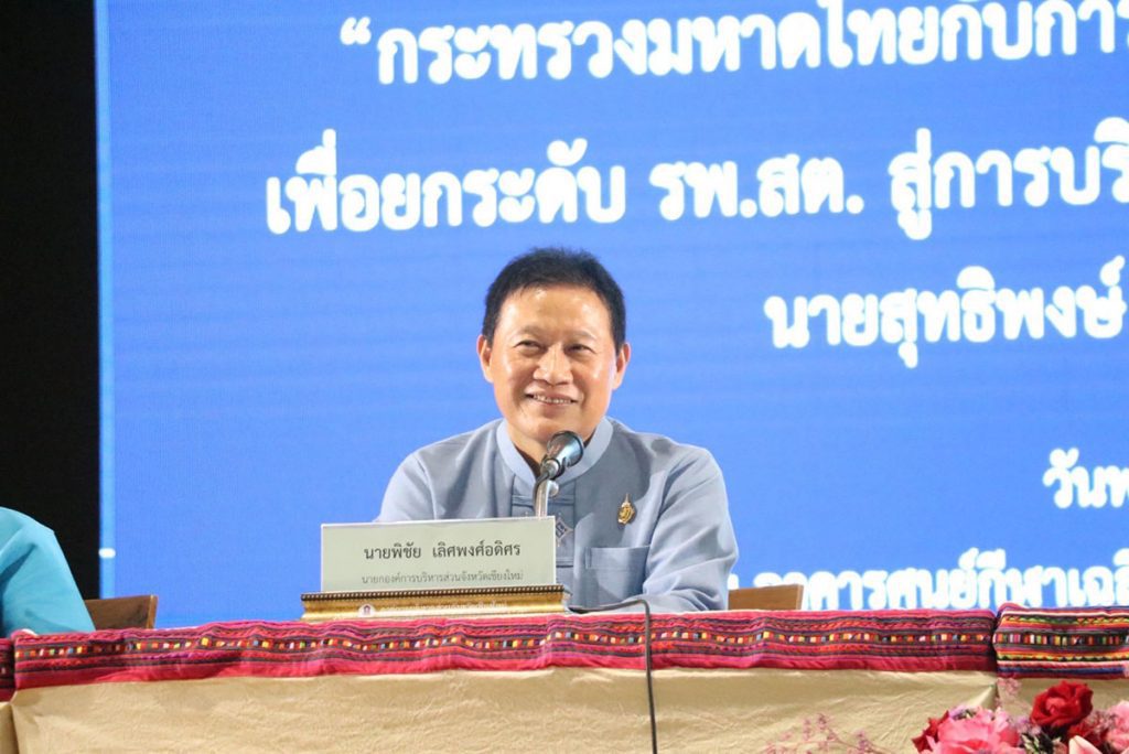 ขณะที่นายสุทธิพงษ์ จุลเจริญ ปลัดกระทรวงมหาดไทย กล่าวว่า การถ่ายโอนภารกิจดูแลสุขภาพมูลฐานและสุขภาพอนามัยไปยังพื้นที่ตำบล หมู่บ้าน ทางรัฐบาลโดยคณะกรรมการกระจายอำนาจได้มอบให้กรมส่งเสริมการปกครองส่วนท้องถิ่นถ่ายโอนภารกิจ ซึ่งอบจ.มีงบฯ มีบุคลากรและอำนาจหน้าที่ดูแลครอบคลุมพื้นที่ซึ่งการถ่ายโอนให้อบจ.ทำให้ผู้บริหารโรงพยาบาลส่งเสริมสุขาภาพและบุคลากรมีสายสื่อสารและทำงานที่สั้น มีองค์รวมที่จะมีโอกาสได้รับงบฯและเครื่องมือ อุปกรณ์ทำหน้าที่ดูแลประชาชน