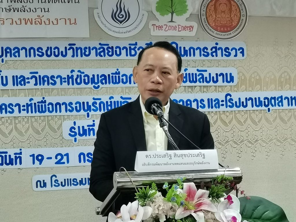 ดร.ประเสริฐ กล่าวว่า พพ. จึงได้จัดทำโครงการฝึกอบรมหลักสูตร “เทคนิคการตรวจวิเคราะห์เพื่อการอนุรักษ์พลังงาน ในอาคาร และโรงงานอุตสาหกรรม” ภายใต้ “โครงการพัฒนาบุคลากรของวิทยาลัยอาชีวศึกษาในการสำรวจ ตรวจวัด จัดเก็บและวิเคราะห์ข้อมูลเพื่อการอนุรักษ์พลังงาน” รุ่นที่ 5 โดยจัดขึ้นเพื่อพัฒนาองค์ความรู้ให้แก่คณาจารย์จากวิทยาลัยอาชีวศึกษา จำนวน 200 คน จากวิทยาลัยอาชีวศึกษาจำนวน 100 แห่ง ให้สามารถเข้าสำรวจ ตรวจวัด และวิเคราะห์การใช้พลังงาน หรือการทำ Energy Audit ให้แก่สถานประกอบการ SMEs ในพื้นที่ได้ เกิดเป็นเครือข่าย “ผู้เชี่ยวชาญด้านการอนุรักษ์พลังงานเชิงพื้นที่” อันจะส่งผลให้สถานประกอบการ SMEs ทราบถึงกระบวนการหรือเครื่องจักร/อุปกรณ์ที่มีการสูญเสียทางด้านพลังงาน รวมทั้งแนวทางในการบริหารจัดการการใช้พลังงานอย่างมีประสิทธิภาพและประหยัดอย่างยั่งยืน ซึ่งจะเป็นการเพิ่มศักยภาพในการแข่งขันทางธุรกิจของสถานประกอบการ SMEs โดย พพ. ได้มองว่าสถานประกอบการ SMEs ถือเป็นอีกภาคส่วนของอุตสาหกรรมที่มีความสำคัญของประเทศ เนื่องจากได้รับผลกระทบอย่างรุนแรงจากสถานการณ์การแพร่ระบาดของเชื้อไวรัส COVID-19 ที่ผ่านมา จึงมีความจำเป็นที่จะต้องใช้พลังงานอย่างมหาศาลในช่วงฟื้นตัวทางเศรษฐกิจ