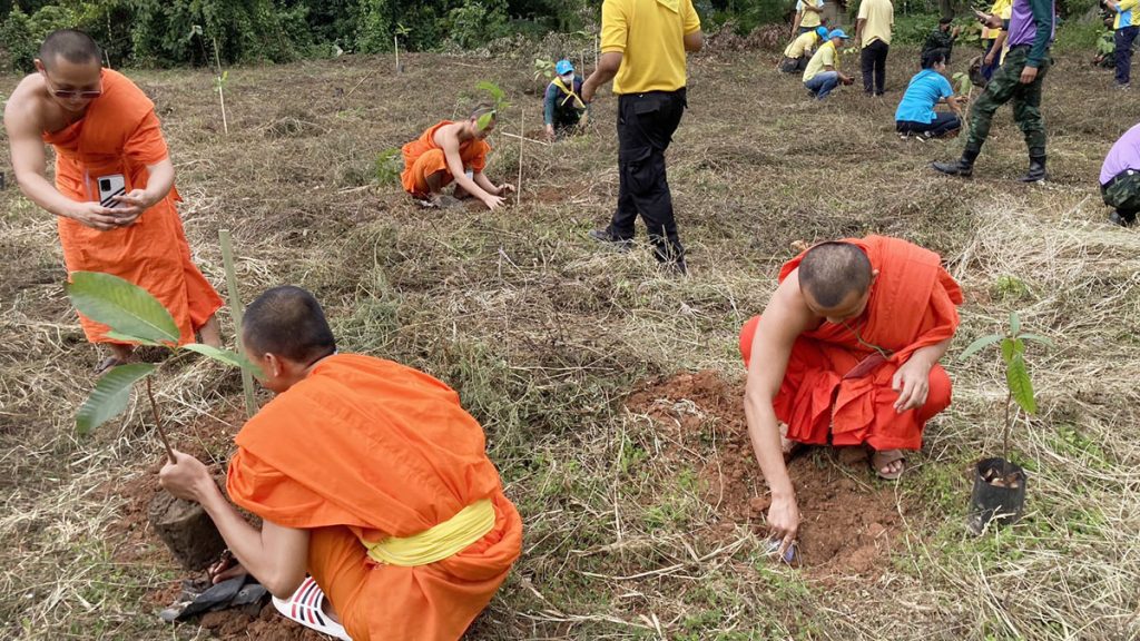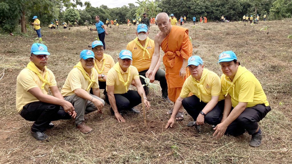 จากนั้นได้ร่วมกันปลูกต้นไม้ที่ได้จัดเตรียมไว้ปลูกกันที่สนามหน้าวัดป่าไม้แดง และปลูกรอบบริเวณวัด พร้อมเข้าทำการชมต้นไม้ที่ทางพระสงฆ์และชาวบ้านปลูกและอนุรักษ์ไว้รอบวัดเมื่อ 22 ปีก่อน มีทั้งต้นไม้สักขนาดเส้นผ่าศูนย์กลาง 1 เมตร ต้นไม้ยางเหียงเส้นผ่าศูนย์กลาง 1-1.5 เมตร ที่ยังมีให้เห็นที่บริเวณวัดที่ปลูกไว้ หลายร้อยต้น และวันนี้ได้มาร่วมปลูกเพื่ออนุรักษ์ป่าเป็นแบบอย่างที่ดีให้กับประชาชน เยาวชน ที่จะช่วยกันสืบสานอนุรักษ์ต้นไม้สิ่งแวดล้อมตามธรรมชาติต่อไป บ้านเมืองจะได้ไม่ขาดแคลนน้ำเพราะระบบนิเวศทางธรรมชาติจะสมบูรณ์ต่อไป