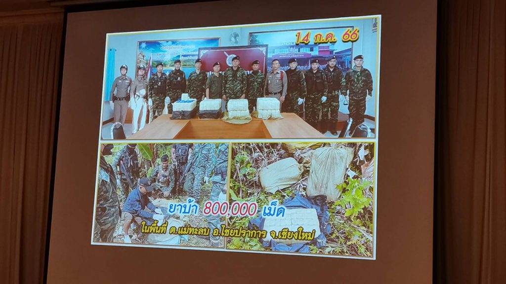พลโท สุริยะ เอี่ยมสุโร แม่ทัพภาคที่ 3 ประธานคณะกรรมการ ศูนย์อำนวยการปฎิบัติการแก้ไขปัญหายาเสพติดชายแดนภาคเหนือ กล่าวว่า ในปีงบประมาณ 2566 ศูนย์อำนวยการปฏิบัติการแก้ไขปัญหายาเสพติดชายแดนภาคเหนือ (ศอ.ปส.ชน.) ได้บูรณาการร่วมกับหน่วยงานที่เกี่ยวข้องในการสกัดกั้นและปราบปรามยาเสพติดในพื้นที่รับผิดชอบ 4 จังหวัดชายแดนภาคเหนือ ได้แก่ จ.แม่ฮ่องสอน เชียงใหม่ เชียงราย และพะเยา โดยมีผลการตรวจยึด/จับกุม จำนวน 451 ครั้ง ผู้ต้องหา 496 ราย ตรวจยึด ยาบ้า 91,263,986 เม็ด, ไอซ์ 3,582.98 กก., เฮโรอีน 28.77 กก., ฝิ่นดิบ 270.87 กก., เคตามีน 363.25 กก. อีกทั้ง หน่วยยังได้ให้ความสำคัญในการสกัดกั้นสารตั้งต้นและเคมีภัณฑ์ไม่ให้เข้าสู่แหล่งผลิต และการลักลอบขนส่งยาเสพติดผ่านระบบโลจิสติกส์ ด้วย โดยได้ดำเนินการตรวจการนำเข้า และการใช้สารเคมีควบคุม ในโรงงานอุตสาหกรรม, การกวดขันการส่งออกสารเคมีผ่านด่านพรมแดน, ตรวจการขนส่งทางบกในห้วงเทศกาลสำคัญ, ตรวจสถานประกอบการรับส่งสินค้าและพัสดุภัณฑ์ ตลอดจนเชิญผู้ประกอบธุรกิจสถานประกอบการขนส่งสินค้า ร่วมประชุม หารือ ขอความร่วมมือ และกำหนดแนวทางในการแก้ไขปัญหาร่วมกัน