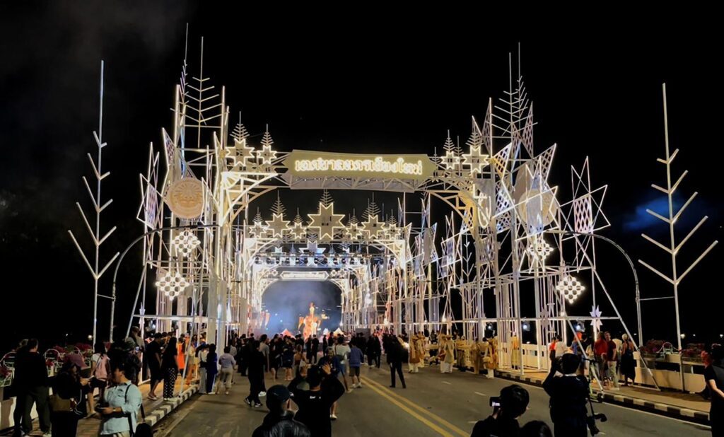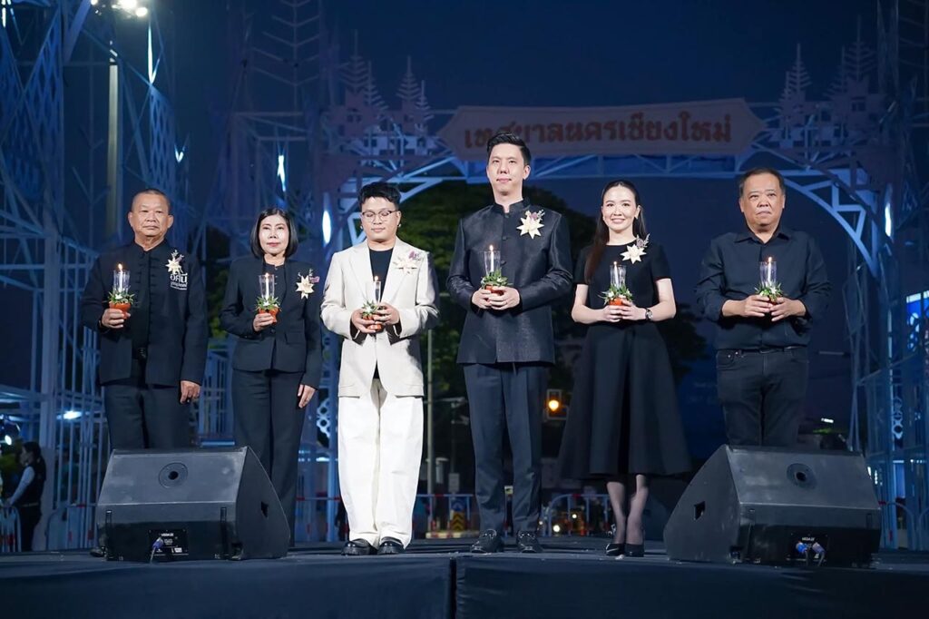 ช่วงค่ำของวันที่ 29 ธ.ค. 68 ที่สะพานนวรัฐ อ.เมือง จ.เชียงใหม่ นายอัศนี บูรณุปกรณ์ นายกเทศมนตรีนครเชียงใหม่ ได้นำคณะผู้บริหารเปิดซุ้มไฟประดับ เพื่อเฉลิมฉลองการส่งท้ายปีเก่าต้อนรับปีใหม่ พุทธศักราช 2569 ภายใต้การน้อมถวายความอาลัยและเทิดพระเกียรติแด่สมเด็จพระนางเจ้าสิริกิติ์ พระบรมราชินีนาถ พระบรมราชชนนีพันปีหลวง ในชื่องาน “มิ่งมวลบุปผา มหาราชินี สมเด็จพระพันปีหลวง” ถ่ายทอดการถวายสักการะบูชาอันสูงสุด ผ่านรูปแบบเครื่องบูชาพื้นเมืองและงานหัตถศิลป์ล้านนาอันทรงคุณค่า