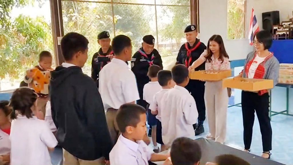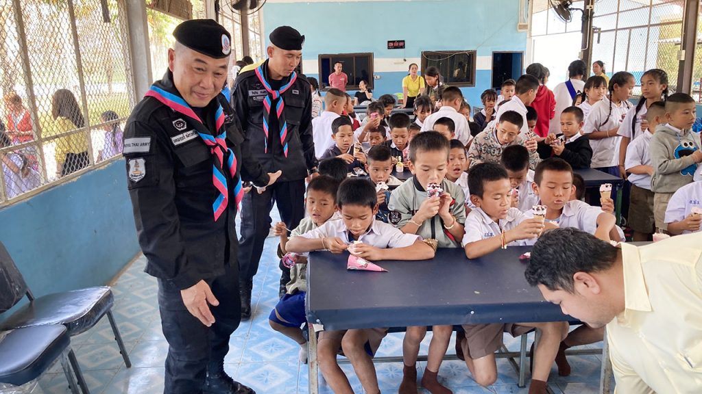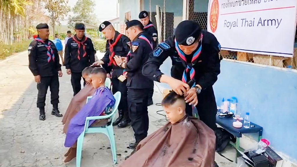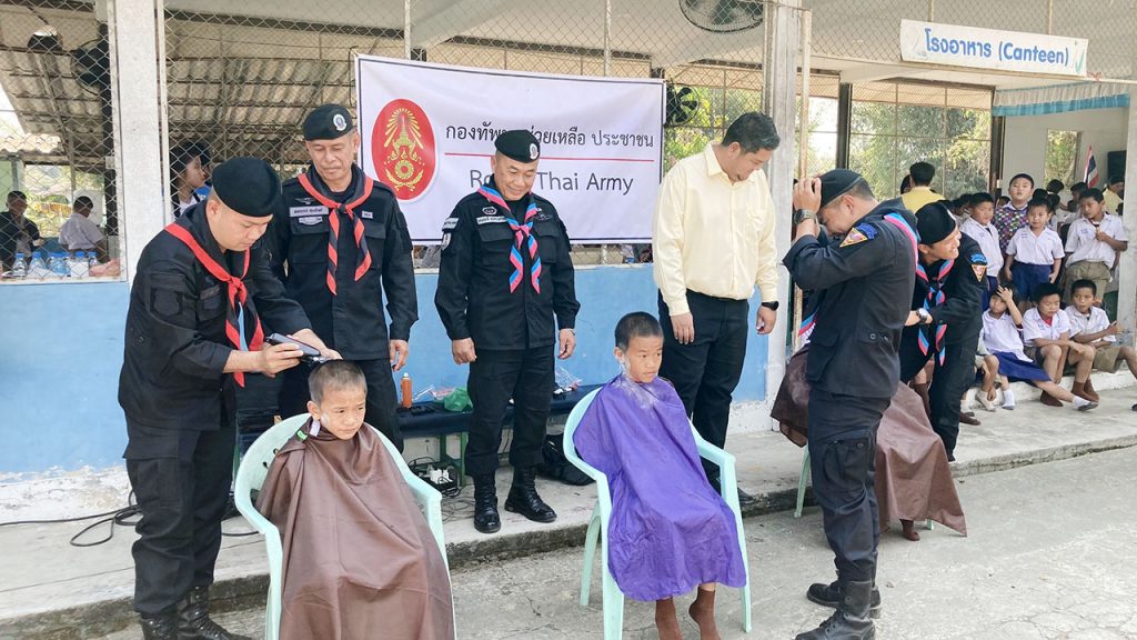 ทหารพราน กองกำลังผาเมือง ตัดผมให้เด็กนักเรียน มอบอุปกรณ์การเรียน พร้อมขนมให้กับนักเรียนแนวชายแดน