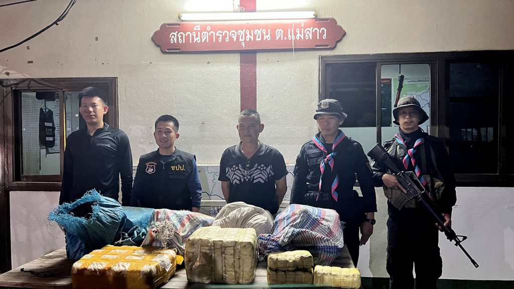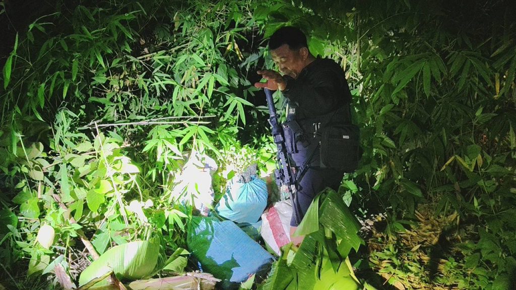 อำเภอแม่อาย ตำรวจปราบปรามยาเสพติดฝางพร้อมทหารพรานตรวจยึดยาบ้า 5 เป้ 200,000 เม็ด