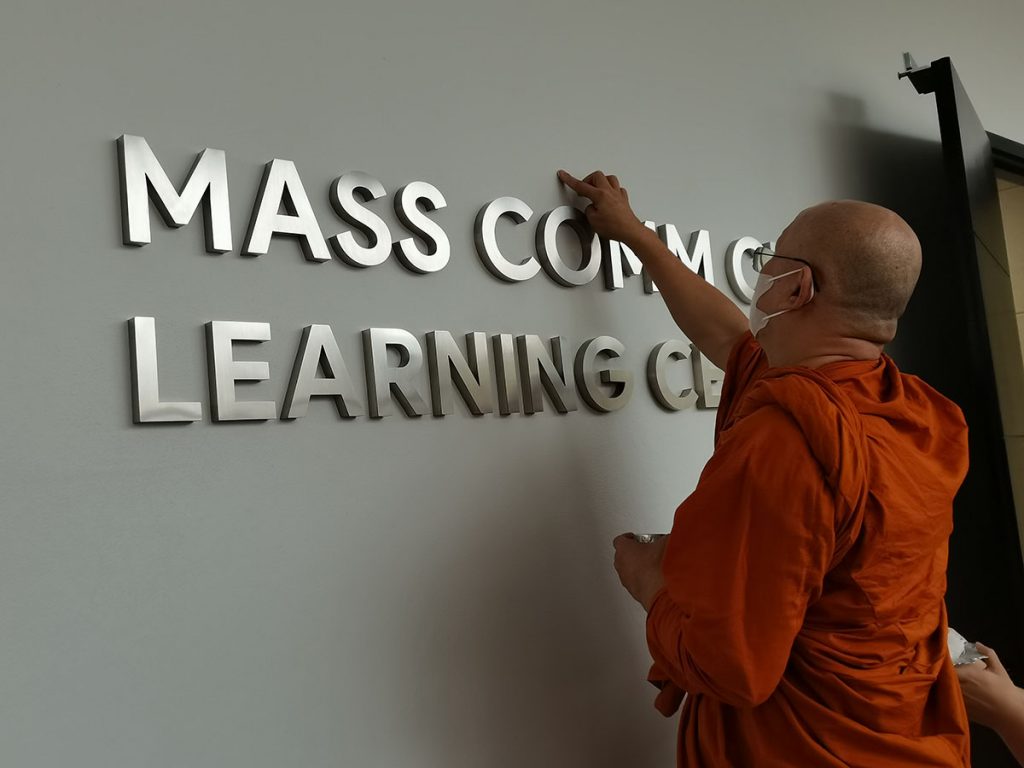 จากนั้น ได้เปิดโอกาสให้แขกผู้มีเกียรติเข้าเยี่ยมชมบรรยากาศของอาคารศูนย์การเรียนรู้ Learning Center ได้ตามอัธยาศัย ทั้งนี้ อาคารศูนย์การเรียนรู้ Learning Center เป็นอาคารดีไซน์ทันสมัย ที่มีพื้นที่ใช้สอยขนาด 2 ชั้น ประกอบด้วย ห้องทำงาน ห้องประชุม และพื้นที่แห่งการเรียนรู้ของนักศึกษา โดยได้รับการสนับสนุนด้านทุนทรัพย์จากศิษย์เก่าแมสคอม และผู้มีคุณูปการ เพื่อสร้างเป็นอาคาร Learning Space อาคาร Learning Center พื้นที่ Co-working Space แนวใหม่ ที่มีบรรยากาศส่งเสริมการทำงาน/การทำกิจกรรมที่ไม่ปิดกั้นความคิดสร้างสรรค์ ตามอัตลักษณ์ของนักศึกษาคณะการสื่อสารมวลชน