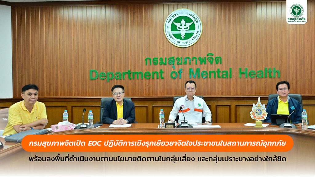 กรมสุขภาพจิตเปิดศูนย์ปฏิบัติการเชิงรุกเยียวยาจิตใจประชาชนในสถานการณ์อุทกภัย พร้อมลงพื้นที่ดำเนินงานตามนโยบาย ติดตามกลุ่มเสี่ยงและกลุ่มเปราะบางอย่างใกล้ชิด