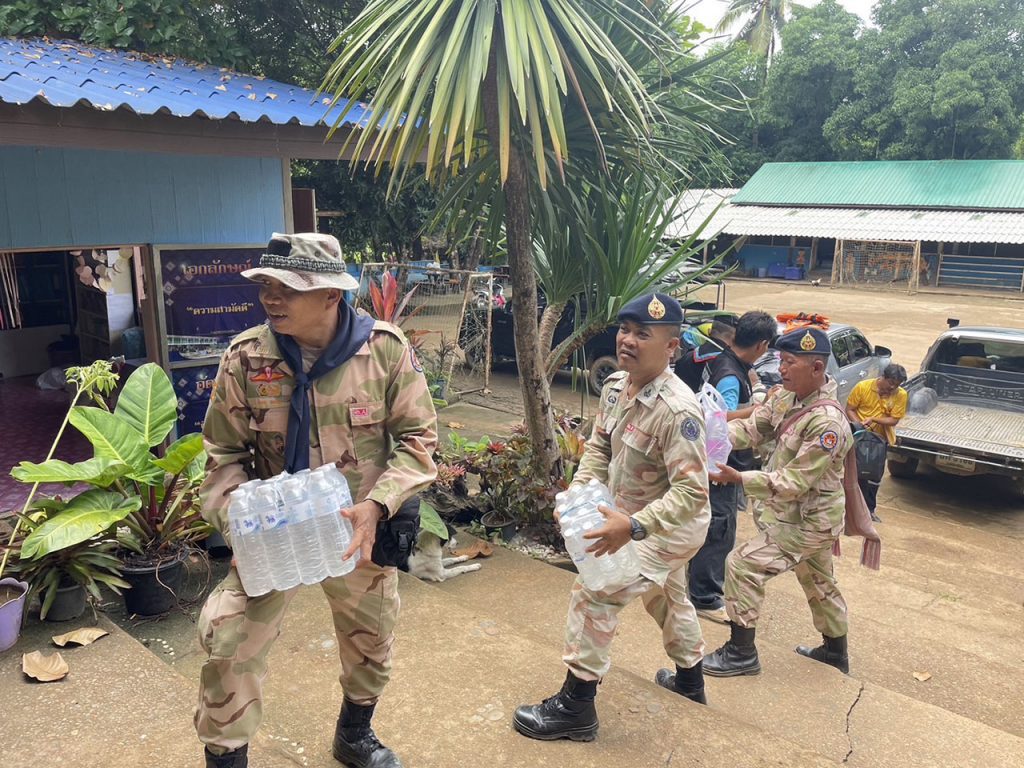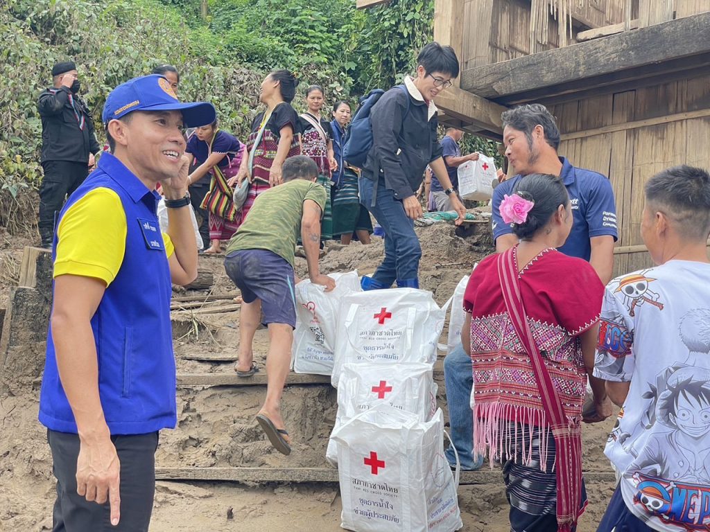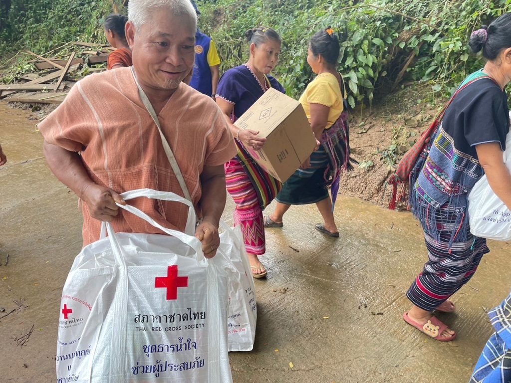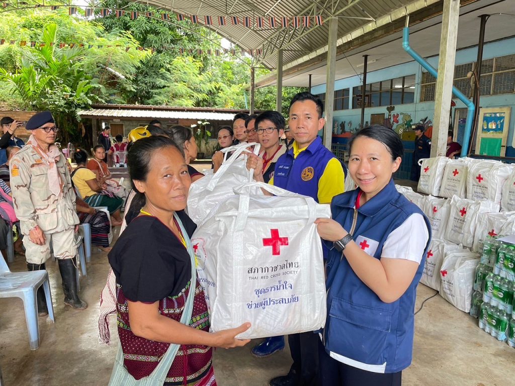 เมื่อวันนี้ 18 กันยายน 2567 นี้ นายวรศักดิ์ พานทอง นายอำเภอแม่สะเรียง จังหวัดแม่ฮ่องสอน และนางพิทยา พานทอง นายกกิ่งกาชาดอำเภอแม่สะเรียง พร้อมด้วย ผู้บริหารเทศบาลตำบลแม่ยวม ทหารพรานจากหน่วยเฉพาะกิจ กรมทหารรานที่ 36 แม่สะเรียงนำสิ่งของบรรเทาทุกข์ ชุดธารน้ำใจ สภากาชาดไทยและสิ่งของจำเป็นต่อการดำรงชีพอีกจำนวนมาก เดินทางโดยทางเรือในแม่น้ำสาละวิน เพื่อสิ่งของนำไปมอบให้แก่ราษฎร จำนวน 60 ครัวเรือน ซึ่งเป็นผู้ประสบภัยพิบัติในพื้นที่บ้านท่าตาฝั่ง ที่ได้รับผลกระทบอย่างหนักจากระดับน้ำในแม่น้ำสาละวินไหลเอ่อเข้าท่วมไปเมื่อก่อนหน้านี้ ซึ่งชาวบ้านเองบอกว่าเป็นอุทกภัยครั้งใหญ่ในรอบกว่า 30 ปี ที่แม่น้ำสาละวินเพิ่มระดับสูงล้นฝั่งเข้าท่วมบ้านเรือนสองฝั่ง ทำให้มีชาวบ้านของบ้านท่าตาฝั่งกว่า 60 ครัวเรือน ได้รับผลกระทบและขาดแคลนอาหาร น้ำดื่มและสิ่งของที่จำเป็นต่อการดำรงชีพ ซึ่งนายอำเภอแม่สะเรียงที่เป็นนายอำเภอชนเผ่าคนแรกและยังเป็นคนแม่สะเรียงด้วย ก็ได้นำสิ่งของไปมอบให้และกล่าวให้กำลังใจแก่ชาวบ้านให้อดทน เตรียมความพร้อมในช่วงจากนี้ต่อไปอีก เพราะอาจจะมีสถานการณ์กลับมาได้ เพราะยังคงอยู่ในช่วงหน้าฝนและยังมีพายุเข้ามาอีกหลายระลอกนับจากนี้ พร้อมกันนี้ก็ได้ให้เจ้าหน้าที่ได้ช่วยกันเข้าเคลียร์ทำความสะอาดบ้านเรือนที่มีดินไหลเข้าบ้านด้วย