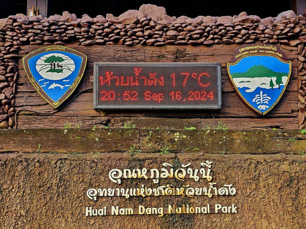 เมื่อช่วงเช้าของวันนี้ (วันที่ 19 กันยายน 2567) นี้ นายบัญชา รามศิริ หัวหน้าอุทยานแห่งชาติห้วยน้ำดัง รอยต่อระหว่างอำเภอปาย จังหวัดแม่ฮ่องสอน กับอำเภอแม่แตง จังหวัดเชียงใหม่ เผยว่า ตั้งแต่ช่วงก่อนรุ่งสางของวันนี้ปรากฏว่าสภาพอากาศที่ภายในอุทยานฯ อุณหภูมิลดต่ำลงเหลือ 17 องศาเซลเซียส พร้อมกับเริ่มเห็นทะเลหมอกได้อย่างหนาตา ซึ่งเป็นครั้งแรกของช่วงหลายฝนต้นหนาวของปีนี้ และยังเป็นช่วงที่ฝนหยุดตกมาได้ระยะหนึ่ง เป็นสิ่งบ่งชี้ว่าบรรยากาศเหมาะสมกับการท่องเที่ยวหรือพักแรมได้มากขึ้น ในขณะที่ทางอุทยานฯ เองก็ได้เตรียมความพร้อมทั้งบ้านพัก ปรับปรุงพืชไม้เมืองหนาว สถานที่กางเต็นท์และสิ่งอำนวยความสะดวกให้แก่นักท่องเที่ยวไว้อย่างพร้อมเพรียงเช่นกัน สำหรับบรรยากาศในตัวเมืองของจังหวัดแม่ฮ่องสอนวันนี้ พบว่าสภาพอากาศโดยทั่วไปเริ่มโปร่งใส มีเพียงในพื้นที่ของอำเภอแม่สะเรียงและสบเมย ที่ยังคงมีเมฆปกคลุมและมีพื้นที่เสี่ยงต่อฝนตกหนักอยู่
