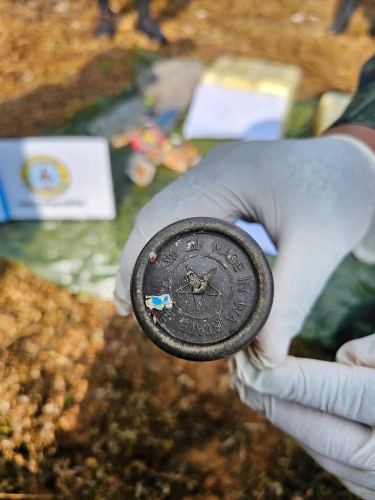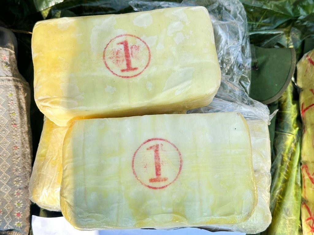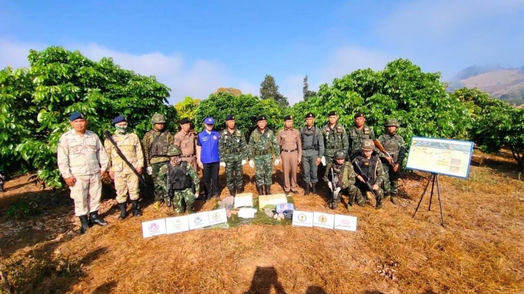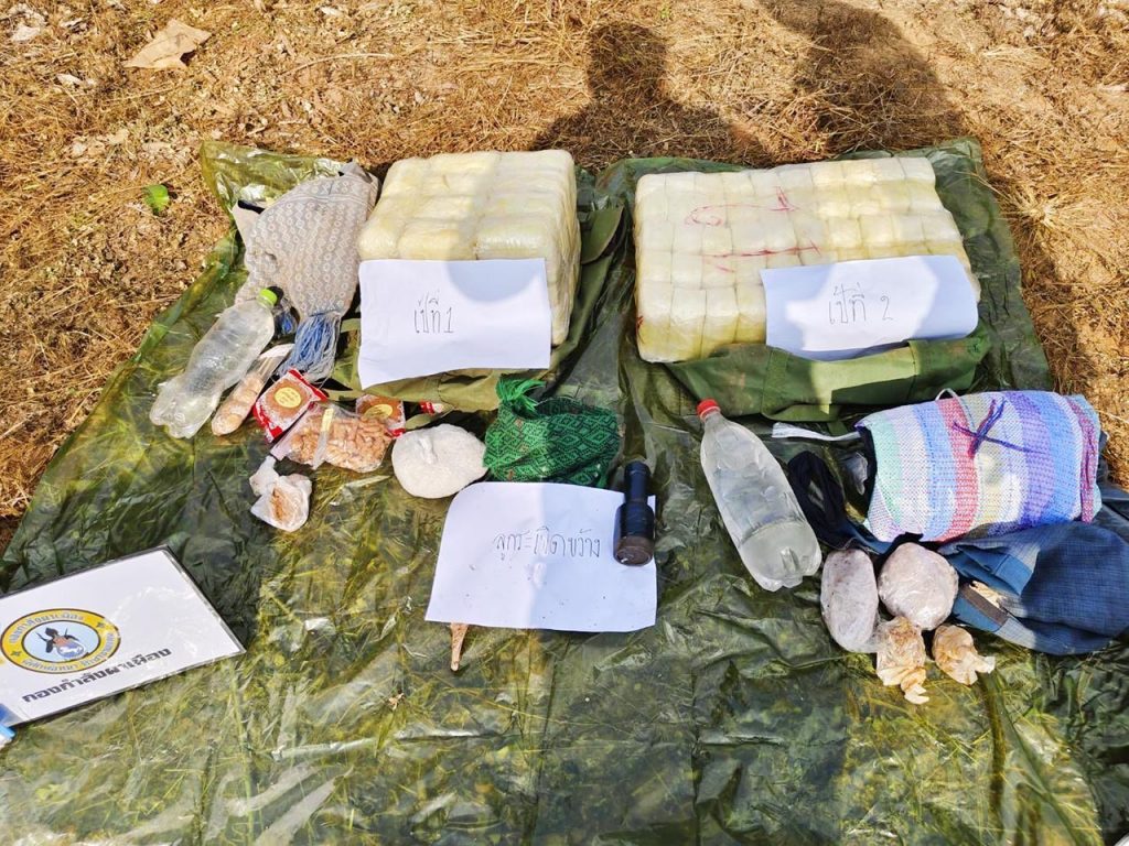 ชุดปฏิบัติการจึงวางกำลังเข้าควบคุมพื้นที่ และตรวจสอบพื้นที่โดยรอบขั้นต้นตรวจพบเป็นกระสอบปุ๋ยดัดแปลงเป็นเป้สะพายหลัง จำนวน 2 เป้ เจ้าหน้าที่จึงได้เข้าทำการตรวจสอบ พบยาเสพติดให้โทษประเภท 1 (ยาบ้า) บรรจุอยู่ในกระสอบเป้ จำนวนประมาณเป้ละ 100,000 เม็ด รวมทั้งสิ้นประมาณ 200,000 เม็ด, ปลอกกระสุน ขนาด 9 มิลเมตร จำนวน 4 ปลอก, ลูกระเบิดขว้าง จำนวน 1 ลูก และถุงย่ามสัมภาระ จำนวน 1 ใบ