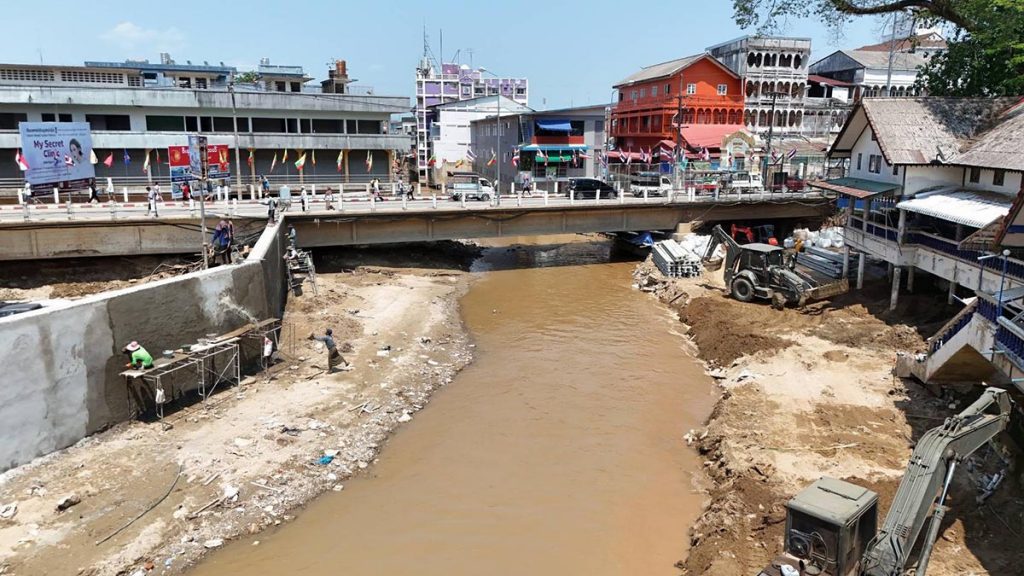 วันที่ 10 พ.ค. 68 นายชรินทร์ ทองสุข ผู้ว่าราชการจังหวัดเชียงราย นายประสงค์ หล้าอ่อน รองผู้ว่าราชการจังหวัดเชียงราย มอบหมายให้ นายวรายุทธ ค่อมบุญ นายอำเภอแม่สาย จ.เชียงราย พร้อมด้วยปลัดอำเภอ, เจ้าหน้าที่ทหารของกรมการทหารช่าง เทศบาลตำบลแม่สาย พร้อมด้วยผู้ที่เกี่ยวข้อง ได้ช่วยกันรื้อถอนอาคารสิ่งปลูกสร้าง ตั้งอยู่ในพื้นที่ตลาดสายลมจอยติดกับลำน้ำสาย แม่น้ำพรมแดนไทย-เมียนมา