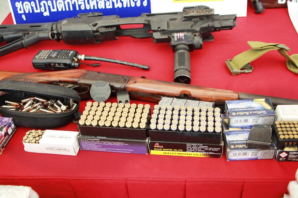 เมื่อไปถึง ต.บ้านเป้า อ.เกษตรสมบูรณ์ มีชายชาวมูเซอ 2 คน ชื่อว่านายวิทยา อายุ 46 ปี และนายวุฒิชัย อายุ 43 ปี ชาว ต.แม่ยาว อ.เมืองเชียงราย แต่ไปอาศัยอยู่ที่ จ.ชัยภุมิ ได้ขับรถกระบะไปรับตู้ลำโพงทางเจ้าหน้าที่จึงจับกุมตัวเอาไว้ สอบสวนเบื้องต้นทราบว่าได้มีนาย “จะนะ” ชาวมูเซอว่าจ้างให้ขนตู้ลำโพงจาก จ.เชียงราย ไปส่งที่ จ.ชัยภูมิ แลกกับค่าจ้างกล่องละ 50,000 บาท นายวิทยาจึงให้นายวิษณุซึ่งเป็นน้องชายติดต่อประสานงานและนำของกลางจากชายแดนด้าน จ.เชียงราย ไปพักเก็บไว้ที่บ้านรวมมิตร ต.แม่ยาว จากนั้นว่าจ้างเอกชนขนส่งให้นำไปส่งที่ปลายทางดังกล่าว เจ้าหน้าที่อีกส่วนนำตู้ลำโพงที่เหลืออีก 1 ตู้ ไปส่งที่ ต.ภูห่าน อ.สีชมพู มีชายอีก 2 คนชื่อนายธนูทอง อายุ 41 ปีและนายสุริยา อายุ 29 ปี ขับขี่รถจักรยานยนต์มารับเจ้าหน้าที่จึงจับกุมตัวเอาไว้ได้อีกราย จากนั้นได้ขยายผลไปตรวจค้นที่บ้านผู้ต้องหาพบที่บ้านของนายสุริยามี น.ส.นภาลัย อายุ 35 ปี ซึ่งเป็นภรรยาอยู่ และพบของกลางเป็นอาวุธปืนพกสั้น 2 กระบอก ปืนลูกซองยาว 2 กระบอก เครื่องสุนและอุปกรณ์อีกเป็นจำนวนมาก จึงตั้งข้อหาชายทั้ง 4 คนว่า “ร่วมกันจำหน่ายยาเสพติด โดยมีไว้เพื่อจำหน่ายซึ่งยาเสพติดให้โทษประเภท 1 (เมทแอมเฟตามีนหรือยาบ้า) โดยไม่ได้รับอนุญาต อันเป็นการกระทำเพื่อการค้า เป็นการก่อให้เกิดการแพร่กระจายในกลุ่มประชาชนฯ” ส่วน น.ส.นภาลัย ตั้งข้อหาเบื้องต้นเกี่ยวกับอาวุธปืน