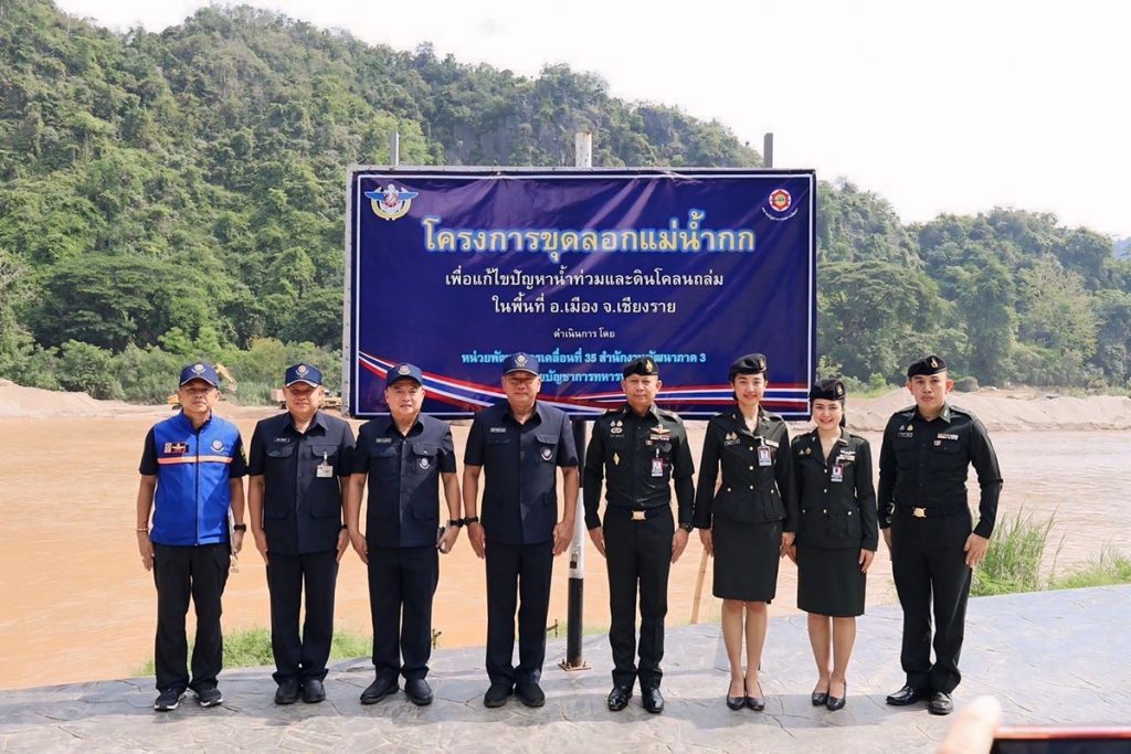 วันที่ 5 มิ.ย. 68 เวลา 09.00 น. พล.ต.จักรวีร์ เสนีย์วรยุทธ ผบ.มทบ.37 และ นพค.35 สนภ.3 นทพ. ร่วมกับ บก.ทท. ร่วมให้การต้อนรับ พล.ท.ธีรพงศ์ ปัทมสิงห์ ณ อยุธยา รองผู้บัญชาการหน่วยบัญชาการทหารพัฒนา (ฝ่ายพัฒนา) และคณะ ในโอกาสเดินทางมาตรวจติดตามผลการดำเนินงาน โครงการขุดลอกและบำรุงรักษาร่องน้ำแม่น้ำกก ตามแผนการแก้ไขปัญหาเชิงโครงสร้างพื้นฐาน (แม่น้ำกก) ระยะเร่งด่วน