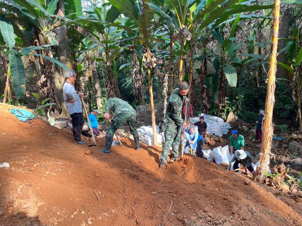 มณฑลทหารบกที่ 37 จัดกำลังพล “เราทำความ ดี ด้วยหัวใจ” นำโดย ร้อยตรี ณัฐพล บุญทับ หัวหน้าชุดปฏิบัติงานประสานการคุ้มครองป้องกันชุมชน สถานีพัฒนาการเกษตรพื้นที่สูง ตามพระราชดำริ บ้านธารทอง พร้อมด้วยกำลังพล “เราทำความ ดี ด้วยหัวใจ” เพื่อแสดงออกถึงความจงรักภักดี และสำนึกในพระมหากรุณาธิคุณของพระบาทสมเด็จพระเจ้าอยู่หัว และเพื่อถวายเป็นพระราชกุศลเนื่องในโอกาสวันคล้ายวันพระราชสมภพ สมเด็จพระนางเจ้าสุทิดา พัชรสุธาพิมลลักษณ พระบรมราชีนี 3 มิถุนายน 2568 บรูณาการร่วมกับ หัวหน้าและเจ้าหน้าที่คนงานสถานีพัฒนาการเกษตรที่สูง ตามพระราชดำริ บ้านธารทอง และเจ้าหน้าที่สำนักบริหารพื้นที่อนุรักษ์ที่ 15 กรมอุทยานแห่งชาติสัตว์ป่าและพันธุ์พืชเชียงราย ดำเนินการสร้างฝายชะลอน้ำแบบดิน (Check Dam) เป็นวิธีการอนุรักษ์ดินและน้ำที่ช่วยชะลอการไหลของน้ำ ลดการกัดเซาะของดิน และเพิ่มความชุ่มชื้นให้พื้นที่ เพื่อเป็นการบริหารจัดการน้ำจากธรรมชาติที่ทำให้พื้นที่มีน้ำใช้และให้ประโยชน์ได้มากที่สุด
