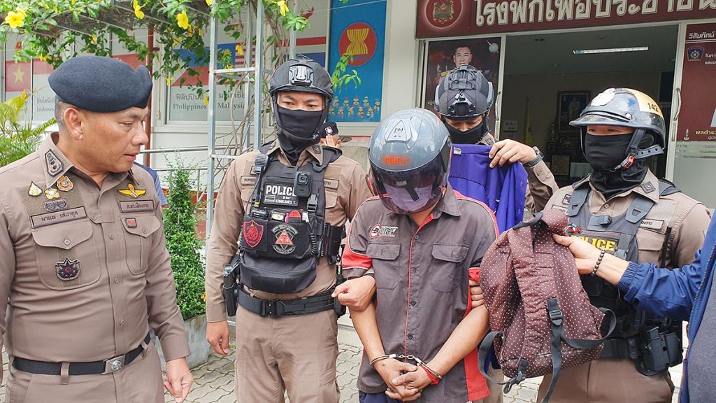 การจับกุมในครั้งนี้ทางเจ้าหน้าที่ตำรวจจึงได้ออกติดตามหาตัวโดยติดตามเส้นทางจากกล้องวงจรปิดตามจุดต่างๆ และลักษณะของคนร้าย จนพบว่าได้ไปหลบซ่อนอยู่ในบ้านไม่มีเลขที่พื้นที่หมู่บ้านโล๊ะป่าตุ้ม หมู่ 7 ต.ดอยลาน อ.เมืองเชียงราย ห่างจากตัวเมืองเชียงรายออกไปประมาณ 30 กิโลเมตร เจ้าหน้าที่จึงได้นำกำลังเข้าไปปิดล้อมเอาไว้ก็พบตัวนายภัคพงษ์ จึงจับกุมตัวได้ จากการตรวจในบ้านพบอาวุธปืนยาวไทยประดิษฐ์จำนวน 1 กระบอก เมื่อตรวจร่างกายพบสารเสพติดในร่างกายจึงตั้งข้อหาเพิ่มเติมคือ “มีอาวุธปืนไว้ในครอบครองโดยไม่ได้รับอนุญาตฯ,เสพยาเสพติดให้โทษประเภท 1 (ยาบ้า) โดยผิดกฎหมาย