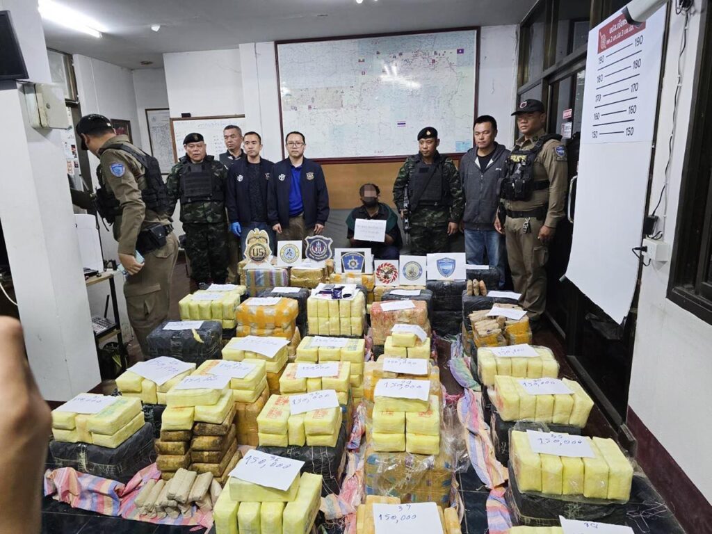 วันที่ 5 ธ.ค.68 เวลาประมาณ 17.00 น. เจ้าหน้าที่หลายหน่วยสนธิกำลังเข้ม สกัดการลักลอบลำเลียงยาเสพติดในพื้นที่จังหวัดเชียงราย หลังชุดปฏิบัติการเคลื่อนที่เร็ว ฉก.ทัพเจ้าตาก กองกำลังผาเมือง หน่วยข่าวกรองทางทหาร กองทัพบก หน่วยปราบปรามยาเสพติดจังหวัดเชียงราย (นปส.) บช.ปส. เจ้าหน้าที่ตำรวจ สภ.บ้านดู่ ได้ร่วมกันจับกุม นายพีรกร (ขอสงวนนามสกุล) อายุ 35 ปี บ้านอยู่ตำบลบ้านเลน อำเภอบางปะอิน จังหวัดพระนครศรีอยุธยา พร้อมของกลางยาเสพติดให้โทษประเภท 1 (ยาบ้า) จำนวน 39 กระสอบ ประมาณ 8 ล้านเม็ด