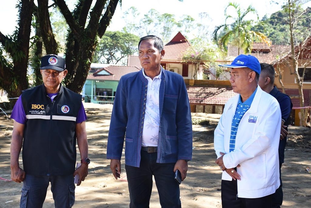 วันที่ 16 พฤศจิกายน 267 ดร.สุรสีห์ กิตติมณฑล เลขาธิการสำนักงานทรัพยากรน้ำแห่งชาติ (สทนช.) นำคณะผู้แทนประเทศจีน ศึกษาพื้นที่ประสบอุทกภัย หารือการดำเนินโครงการเสริมสร้างการปรับตัวของชุมชนเมืองต่อภาวะอุทกภัยภายใต้การเปลี่ยนแปลงสภาพภูมิอากาศ และความรุนแรงที่เกิดขึ้นในแม่น้ำสาย – แม่น้ำรวก ที่ จังหวัดเชียงราย ซึ่งขณะนี้อยู่ระหว่างการขอรับการสนับสนุนทุนจากกองทุนพิเศษแม่โขง – ล้านช้าง (Mekong-Lancang Cooperation: MLC) ปี 68 เพื่อแก้ปัญหาน้ำข้ามพรมแดนอย่างยั่งยืน โดยมี นายประสงค์ หล้าอ่อน รองผู้ว่าราชการจังหวัดเชียงราย พ.อ.พักตร์พงษ์ เงสันเที๊ยะ หน.กลุ่มนโยบายแผนและการข่าว กอ.รมน.จังหวัดเชียงราย นายอภิศักดิ์ สวัสดิรักษ์ ผู้จัดการการประปาส่วนภูมิภาคสาขาแม่สาย และผู้แทนจากหน่วยงานที่เกี่ยวข้องร่วมให้การต้อนรับ