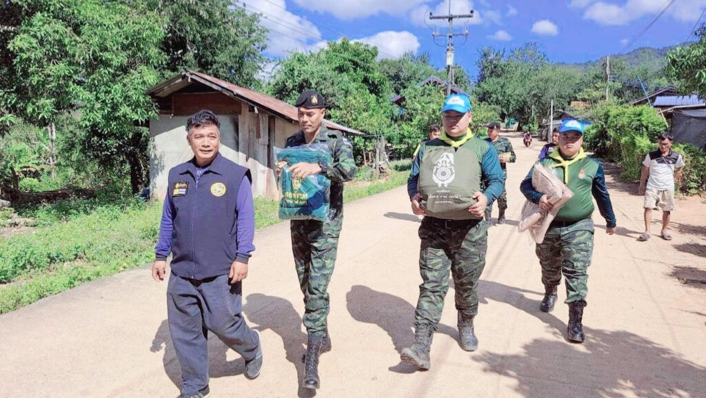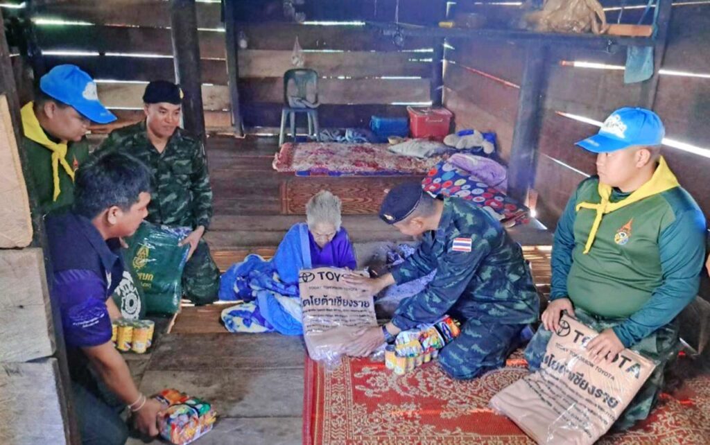 เพื่อเป็นการช่วยเหลือและบรรเทาความเดือดร้อนแก่ประสบความทุกข์ยาก จึงได้มอบถุงยังชีพพระราชทาน จำนวน 2 ถุง ประกอบด้วย มาม่า ปลากระป๋อง น้ำมันพืช ยาเวชภัณฑ์ น้ำดื่ม เป็นต้น และมอบผ้าห่มกันหนาวจากบริษัทโตโยต้า จำกัด ผ้าห่มกันหนาวจาก กองทัพบก รวม 8 ผืน เนื่องจากห้วงนี้เข้าสู่ฤดูหนาว จึงได้รับผลกระทบจากสภาพอากาศหนาวเย็น อีกทั้งจะเข้าสู่ห้วงปีใหม่ไทย และเป็นการสานสัมพันธ์อันดีระหว่างทหารกับประชาชนในพื้นที่ด้วย พร้อมทั้งให้กำลังใจกับครอบครัว ขอให้สู้ต่อไป และหากมีอะไรให้ทหารได้ช่วยเหลือทางหน่วยยินดีให้ความช่วยเหลือเต็มขีดความสามารถ