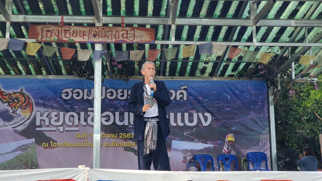 วันที่ 7 ธันวาคม 2567 ที่โฮงเฮียนแม่น้ำของ อ.เชียงของ จ.เชียงราย ชาวบ้าน ตัวแทนชุมชน ผู้นำสตรี และผู้นำท้องถิ่น ผู้ใหญ่บ้าน กำนัน นายกเทศมนตรี ตัวแทนองค์การบริหารส่วนตำบล(อบต.) ประมาณ 150 คน ใน 3 อำเภอริมแม่น้ำโขง จ.เชียงราย คือ อ.เชียงแสน อ.เชียงของและ อ.เวียงแก่น ได้มารวมตัวกันเพื่อแสดงออกและเล่าถึงเหตุผลการไม่เอาโครงการสร้างเขื่อนปากแบง (Pak Beng dam) ซึ่งเป็นเขื่อนที่จะก่อสร้างในประเทศลาวห่างจากชายแดนพรมแดนไทยด้าน อ.เวียงแก่นไปราว 96 กิโลเมตร ซึ่งการไฟฟ้าฝ่ายผลิตแห่งประเทศไทย (กฟผ.)ได้ลงนามในสัญญาซื้อไฟฟ้ากับบริษัทเอกชนผู้พัฒนาโครงการสร้างเขื่อนเรียบร้อยแล้ว ขณะที่การศึกษาผลกระทบข้ามแดนยังไม่มีความชัดเจน