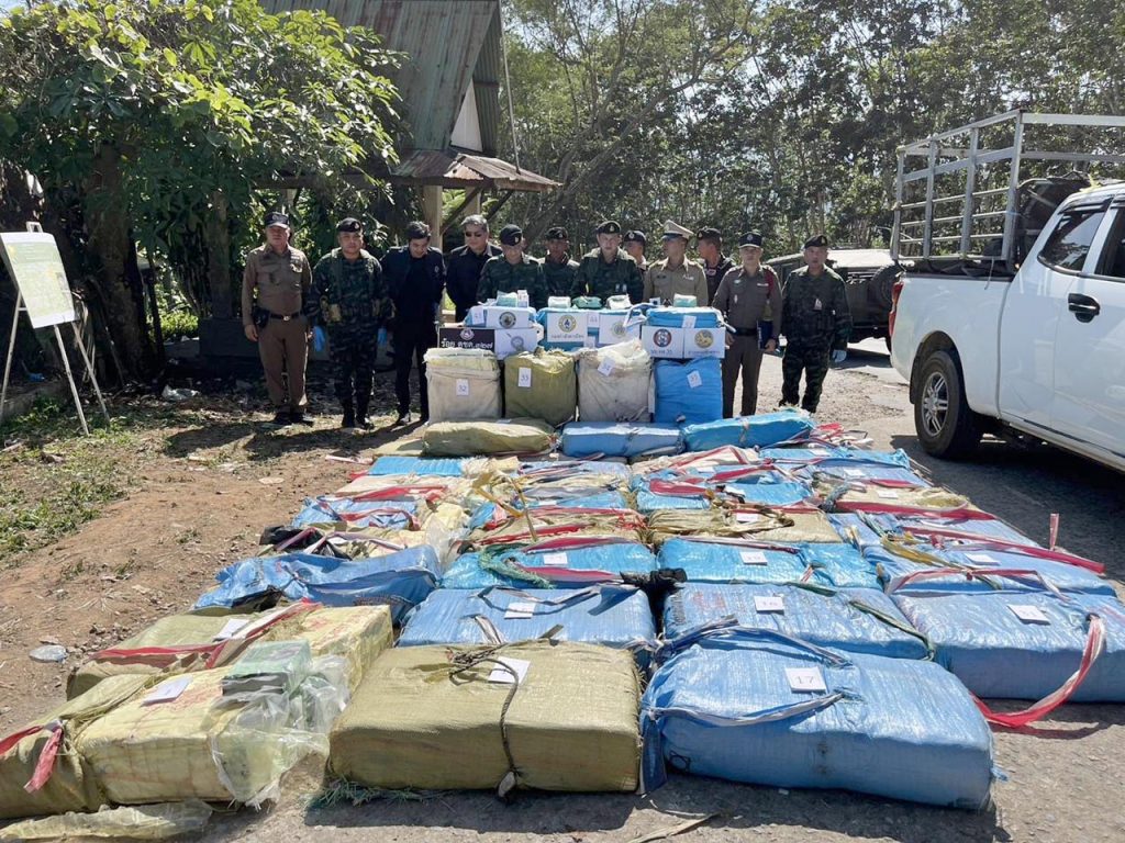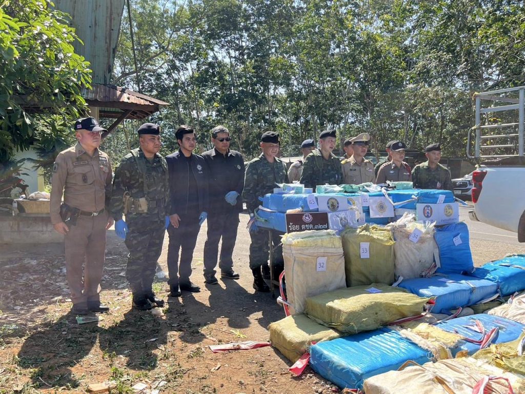 เวลาประมาณ 10.30 น.วันที่ 26 ธ.ค.67 พล.ต.กิดากร จันทรา ผู้บัญชาการกองกำลังผาเมือง มอบหมายให้ พ.อ.มีชัย นิลศาสตร์ รองผู้บัญชาการกองกำลังผาเมือง พ.อ.สหชัย พรหมตรุษ เสธฯ ฉก.ทัพเจ้าตาก ร่วมกับ เจ้าหน้าที่ตำรวจ สภ.แม่ฟ้าหลวง และหน่วยงานที่เกี่ยวข้อง เข้าตรวจสอบยาเสพติดจำนวน 44 เป้ น้ำหนักกว่า 1,200 กิโลกรัม