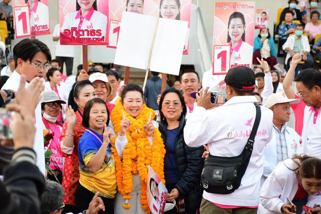 วันที่ 30 ม.ค.2568 ที่สนามกีฬากลาง จ.เชียงราย นางอทิตาธร วันไชยธนวงศ์ อดีตนายกองค์การบริหารส่วนจังหวัด (อบจ.) เชียงราย และผู้สมัครรับเลือกตั้งเป็นนายก อบจ.เชียงราย หมายเลข 1 ได้จัดเวทีปราศรัยส่งท้ายก่อนการเลือกตั้งในวันเสาร์ที่ 1 ก.พ.นี้ โดยมีการผู้สมัครรับเลือกตั้งเป็นสมาชิก อบจ.เชียงราย เขต อ.เมืองเชียงราย ผลัดกันปราศรัยและมีมวลชนเข้าร่วมรับฟังประมาณ 5,000 คน โดยมีแกนนำเสื้อแดงหลายคนพามวลชนไปสนับสนุนและมีกลุ่มการเมืองที่เคยสนับสนุนพรรคเพื่อไทย แต่หันไปสนันสนุนนางอทิตาธร ไปร่วมรับฟังเป็นจำนวนมาก