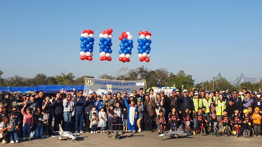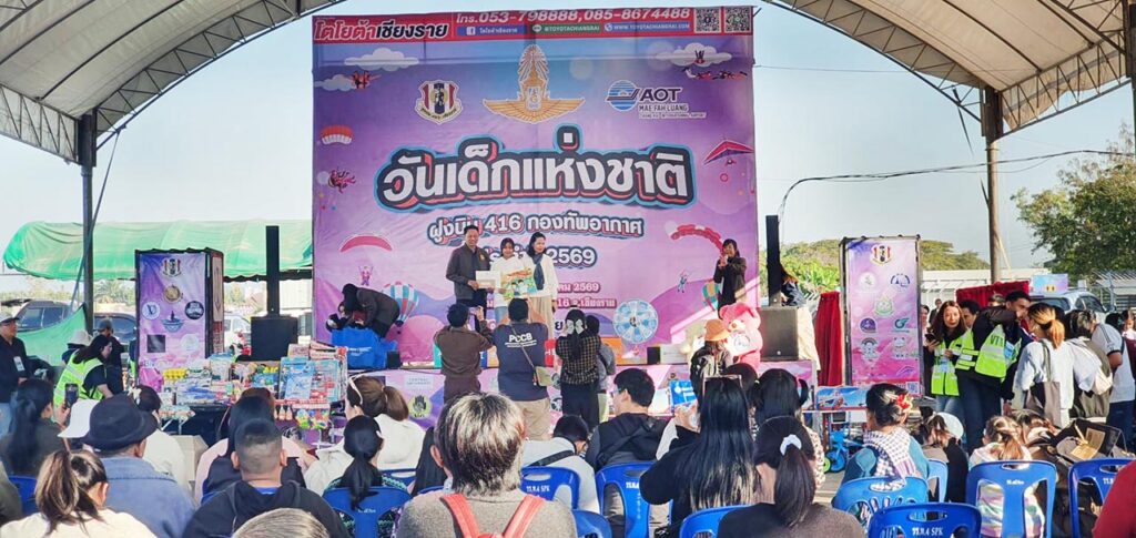 วันที่ 10 ม.ค. 69 การจัดงานวันเด็กแห่งชาติ ประจำปี 2569 ที่ฝูงบิน 416 สนามบินเก่าเชียงราย เป็นไปอย่างคึกคัก โดยฝูงบิน 416 กองทัพอากาศ ร่วมกับท่าอากาศยานแม่ฟ้าหลวงเชียงราย รวมถึงหน่วยงานภาครัฐและภาคเอกชน จัดกิจกรรมวันเด็กแห่งชาติ เพื่อเปิดพื้นที่สร้างความสุขและแรงบันดาลใจให้กับเด็กและเยาวชนในพื้นที่ มีเด็กและผู้ปกครองเข้าร่วมกิจกรรมมากกว่า 10,000 คน