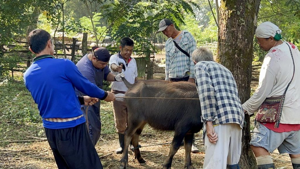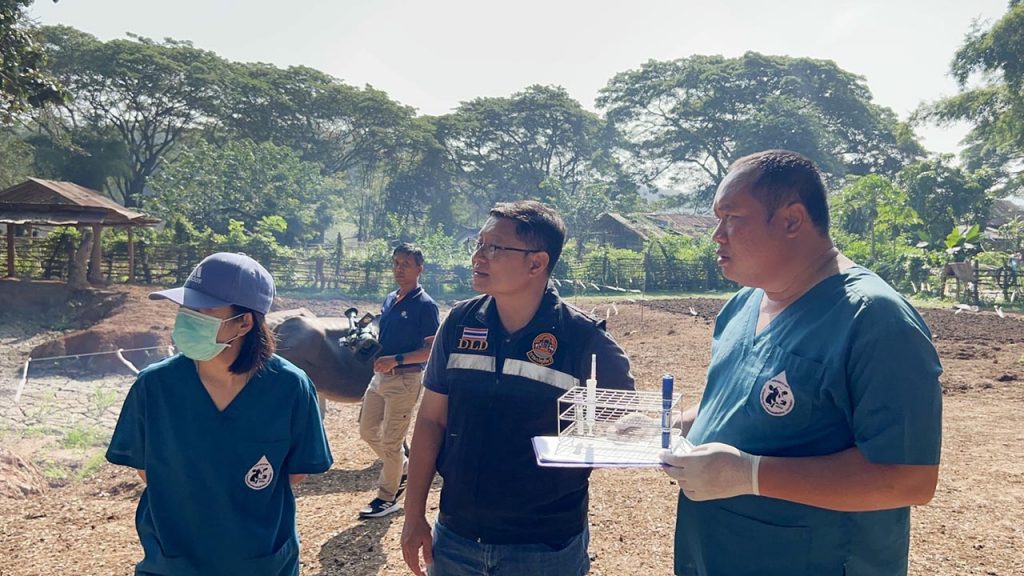 นายสัตวแพทย์พืชผล กล่าวว่าเวียงหนองหล่มมีพื้นที่เลี้ยงควายประมาณ 3 ปาง เกษตรกร 51 ราย ควายเกือบ 2,000 ตัว เมื่อมีการขุดลอกพื้นที่จึงทำให้ควายไม่มีแหล่งอาหารและระบบนิเวศน์เปลี่ยนแปลงไปเพราะพื้นที่หญ้ากลายเป็นจุดที่ถูกขุดลอก ตั้งแต่ปี 2565 ทางปศุสัตว์ ชลประทาน เทศบาล ต.จันจว้า ได้ดำเนินโครงการต่างๆ เข้าสนับสนุนหญ้าแห้งเป็นอาหารสัตว์ ฉีดวัคซีน แต่ปี 2567 พบว่าเกิดน้ำท่วมทำให้เกิดภาวะขาดแคลนอาหารสัตว์มากขึ้น ครั้งนี้จึงเข้าไปเก็บตัวอย่างและเจาะเลือดควายไปตรวจเพิ่มเติมอีกรอบหลังจากตรวจรอบแรกแล้วไม่พบว่าเป็นโรคระบาดโดยพบเพียงพยาธิในทางเดินอาหาร เพื่อรักษาสัตว์ การถ่ายพยาธิและให้ยาบำรุงต่างๆ รวมทั้งติดตามฝูงควายทั้งหมดต่อไป
