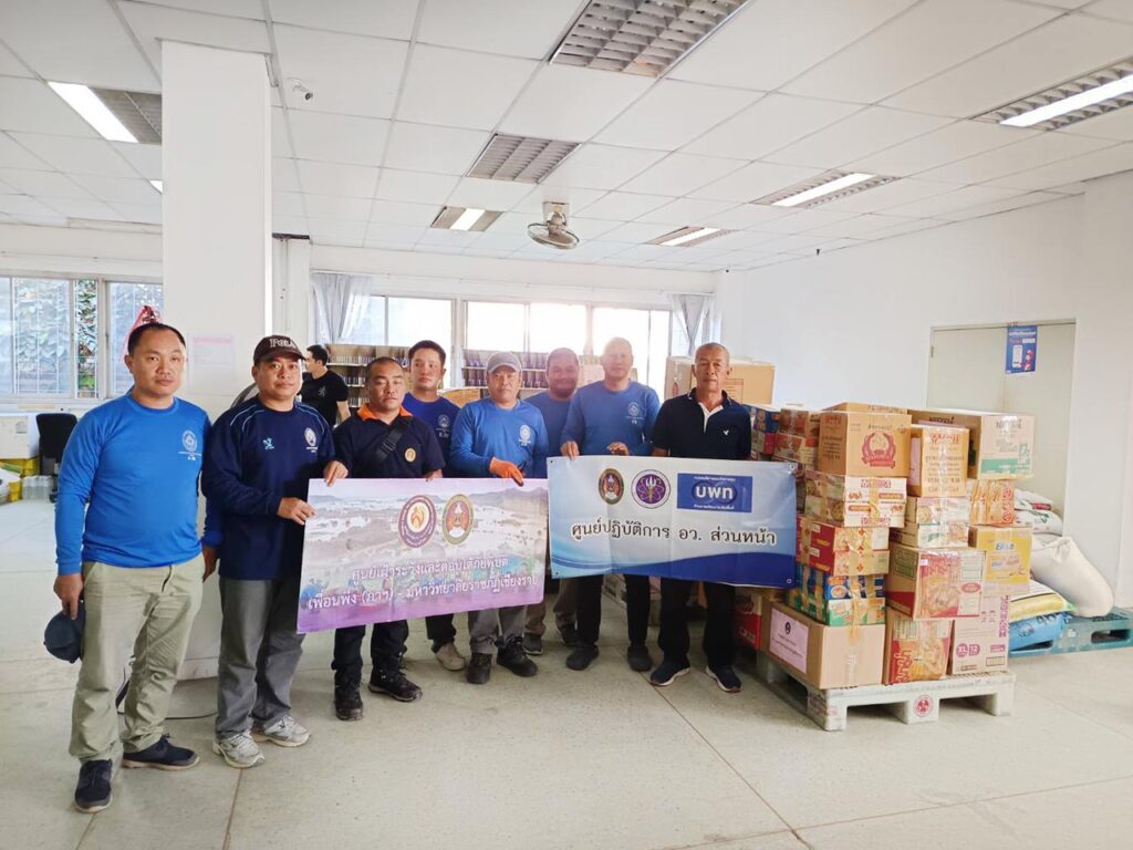 วันที่ 10 ธันวาคม 2568 สำนักกองบริหารกายภาพสิ่งแวดล้อมและความปลอดภัยมหาวิทยาลัยราชภัฏเชียงราย ทางด้าน รศ.ดร.ไพโรจน์ ด้วงนคร อธิการบดีมหาวิทยาลัยราชภัฏเชียงรายพร้อมคณะกรรมการส่งเสริมกิจการมหาวิทยาลัย มูลนิธิอาสาเพื่อนพึ่ง(ภาฯ) ยามยากสภากาชาดไทย มอบหมายให้ รศ.ดร.นาวิน พรมใจสา จิตอาสา4A-393/ก จิตอาสา 904 ผอ.ศูนย์เฝ้าระวังและตอบโต้ภัยพิบัติเพื่อนพึ่ง(ภาฯ)ราชภัฏเชียงราย พร้อมด้วย ผอ.ราชันทนันชัย ผู้อำนวยการกองทัพสิ่งแวดล้อมและความปลอดภัย พร้อมด้วยภาคีเครือข่ายได้แก่ อว.ส่วนหน้า /บพท. /กองบิน 416 เชียงราย ศูนย์การจัดการภัยพิบัติบ้านดู่ บริษัทสมบัติทัวร์จำกัดเชียงราย
