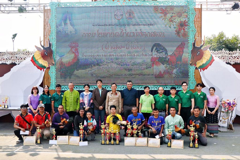 วันที่ 8 กุมภาพันธ์ 2568 เวลา 11.45 น. ที่ ศูนย์ไทใหญ่ศึกษา อำเภอเมืองแม่ฮ่องสอน จังหวัดแม่ฮ่องสอน นายเอกวิทย์ มีเพียร ผู้ว่าราชการจังหวัดแม่ฮ่องสอน มอบหมายให้ นายอุดมศักดิ์ ขาวหนูนา รองผู้ว่าราชการจังหวัดแม่ฮ่องสอน มอบรางวัลแก่ผู้ชนะการประกวดแข่งขันไก่แม่ฮ่องสอน (ไก่ต่อ-ไก่ตั้ง) โดยมี นายบุญลือ ธรรมธรานุรักษ์ รองผู้ว่าราชการจังหวัดแม่ฮ่องสอน นายสมพงษ์ พิพัฒพงค์ชัย ปศุสัตว์จังหวัดแม่ฮ่องสอน หัวหน้าส่วนราชการ และหน่วยงานที่เกี่ยวข้องในสังกัดกระทรวงเกษตรและสหกรณ์ของจังหวัดแม่ฮ่องสอน และผู้เข้าร่วมการแข่งขันร่วมกิจกรรม