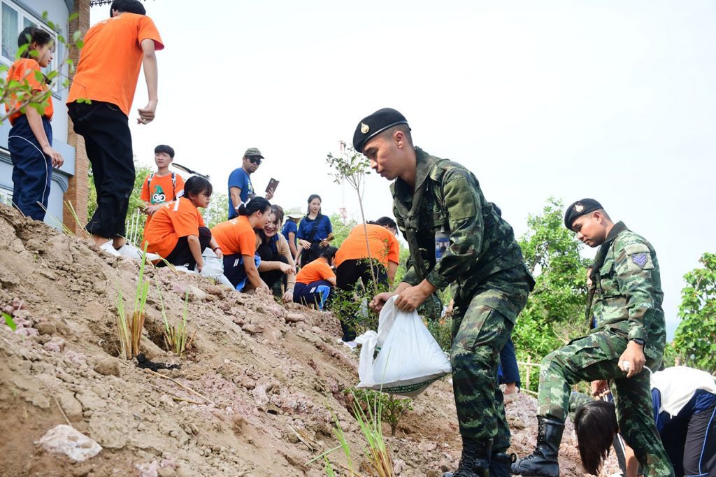 โดยได้ร่วมกันปลูกต้นหูกระจง และหญ้าแฝก บริเวณลานดินด้านข้างอาคารผู้สูงอายุ วัดพระธาตุดอยกองมู ตำบลจองคำ อำเภอเมืองแม่ฮ่องสอน เพื่อสร้างพื้นที่สีเขียว และแก้ไขปัญหาดินสไลด์ที่อาจเกิดขึ้นได้ในอนาคต