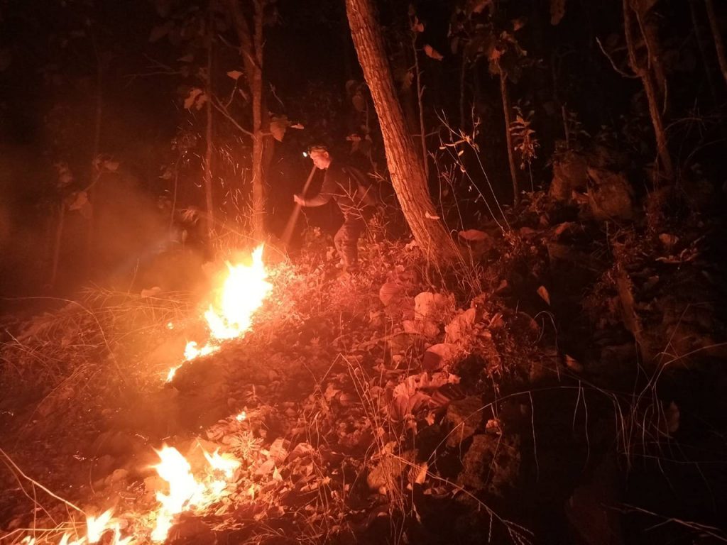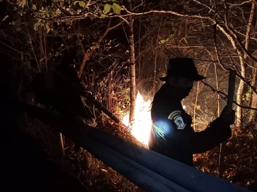 วันที่ 27 กุมภาพันธ์ 2567 นายทวีชัย กันทใจ หน.หน่วยป้องกันและพัฒนาป่าไม้เมืองแม่ฮ่องสอน มส.2 อ.เมือง จ.แม่ฮ่องสอน เปิดเผยว่า ของคืนวันที่ 26 ก.พ.2567 หน่วยฯมส.2 และ หน่วยป้องกันรักษาป่า ฯ มส.8 ( ม่อนตะแลง ) และเจ้าหน้าที่ศูนย์ส่งเสริมการควบคุมไฟป่าแม่ฮ่องสอน ได้ร่วมกันออกตรวจลาดตระเวนเฝ้าระวังไฟป่าในเขตพื้นที่รับผิดชอบ ในเขตป่าสงวนแห่งชาติป่าแม่ปายฝั่งซ้าย ได้ตรวจพบไฟป่าบริเวณรอบ ๆ ด้านหลังวัดพระธาตุดอยกองมู บ้านขุนกลาง หมู่ที่ 11 ต.ปางหมู อ.เมือง จ.แม่ฮ่องสอน พร้อมได้ประสานเจ้าหน้าที่สถานีควบคุมไฟป่าแม่ฮ่องสอน (กรมอุทยานแห่งชาติ สัตว์ป่า และพันธุ์พืช) เข้าตรวจสอบพื้นที่ที่เกิดจุดไฟป่า ร่วมกับทำการดับไฟ และสามารถดับเสร็จเป็นที่เรียบร้อย พื้นที่ป่าถูกไฟไหม้เสียหายประมาณ 20 ไร่ ชนิดป่าเต็งรัง