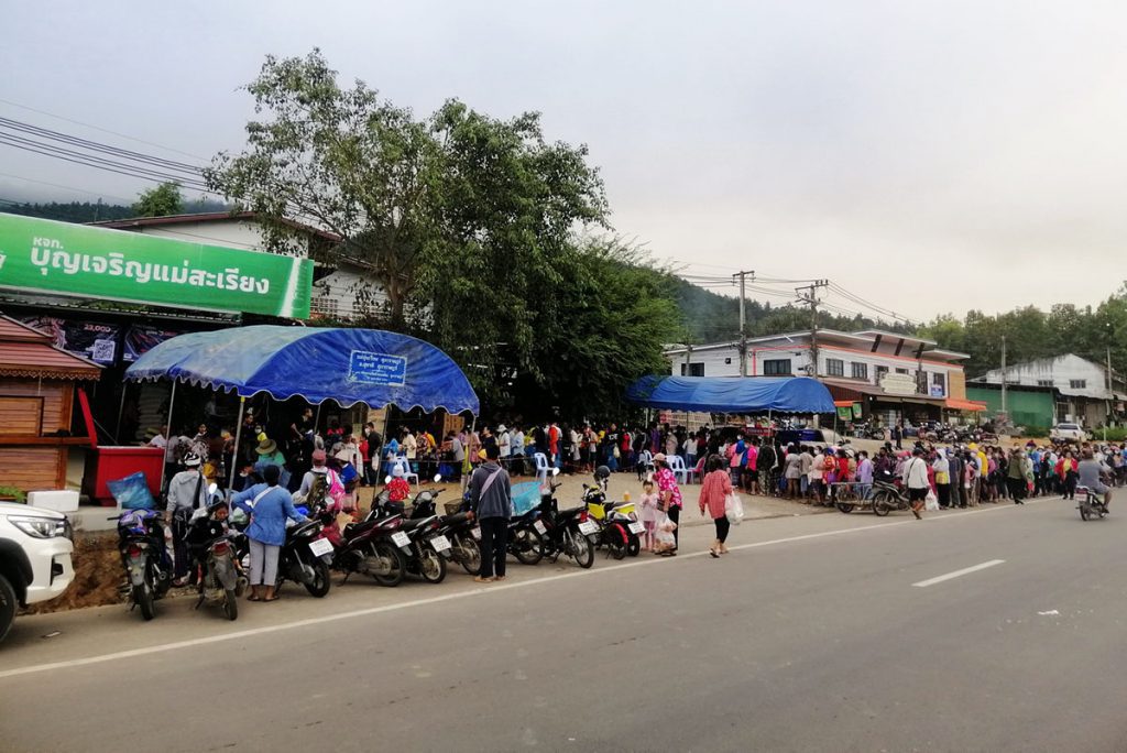 5 ธันวาคม 2565 ที่บริเวณหน้าร้านบุญเจริญแม่สะเรียง อ.แม่สะเรียง จ.แม่ฮ่องสอน ประชาชนทั่วสาระทิศยืนถือถุงหิ้วเดินทางรอคิวยาวเหยียด ภายหลังจากที่ทาง ร้านบุญเจริญแม่สะเรียง ร่วมกับ เครือข่ายพันธมิตร โรงน้ำดื่ม นะโม โรงบรรจุ PT บจก.ม่วงเพ็ชรมาร์เก็ตติ้ง วิชิตการค้า โรงงานลูกชิ้นพรสวรรค์ โรงงานไส้กรอกเจ๊อัมพร ร่วม แจกจ่ายอาหารแห้ง มาม่า ไข่ แปรฟันสบู่ยาสีฟัน ขนม และ อาหารปรุงสุข ข้าวเหนียวไก่ทอด ทอดมันปลาการาย ลูกชิ้นไส้กรอกทอด ส้มตำ แก่พี่น้องประชาชนในพื้นที่ อ.แม่สะเรียง เพื่อถวายเป็นพระราชกุศลแด่ “พ่อหลวง”