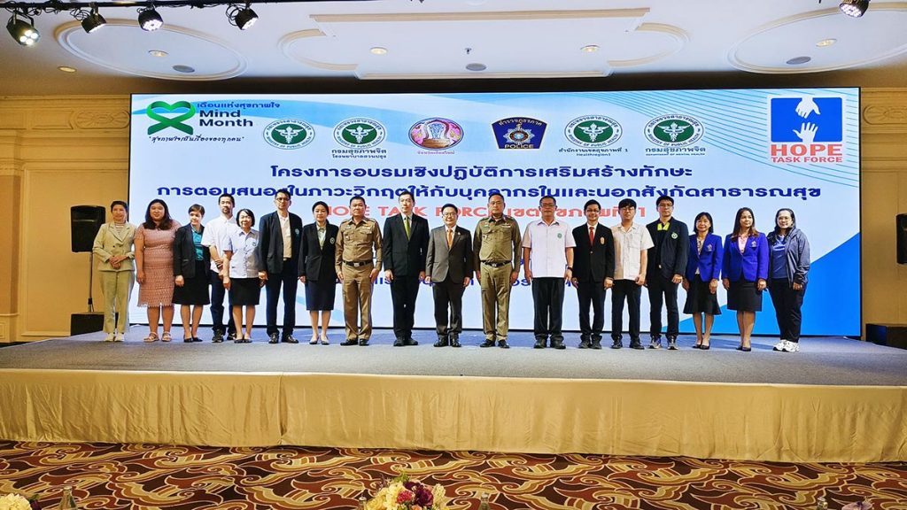 นายแพทย์ศิริศักดิ์ ธิติดิลกรัตน์ รองอธิบดีกรมสุขภาพจิต กล่าวว่า ปัญหาสุขภาพจิตของประชาชนโดยเฉพาะปัญหาการฆ่าตัวตาย ที่เพิ่มขึ้นถือว่าเป็นการสะท้อนถึงปัญหาสุขภาพจิตที่รุนแรง และเป็นปัญหาสาธารณสุขที่ทั่วโลกให้ความสำคัญ การแก้ไขปัญหาดังกล่าวจำเป็นต้องอาศัยความร่วมมือจากทุกภาคส่วนเข้ามามีส่วนร่วม ทีมปฏิบัติการพิเศษป้องกันการฆ่าตัวตาย หรือ Hope Task Force เป็นอีกกลไกหนึ่ง ที่เป็นความร่วมมือโดยใช้จุดแข็งในการทำงานจาก 3 หน่วยงาน คือ ภาคสาธารณสุข ทีมตำรวจ และ Influencer รวมถึงสื่อมวลชน ในการช่วยเหลือผู้ที่มีความเสี่ยงต่อการฆ่าตัวตาย