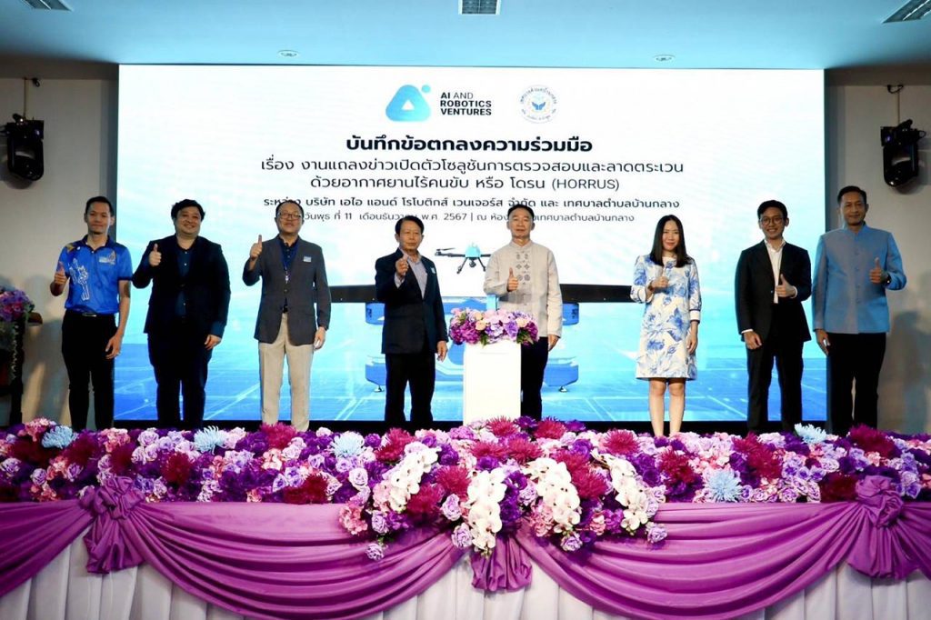 ที่ห้องประชุมเทศบาลตำบลบ้านกลาง นายยุทธพงศ์ ไชยศร นายอำเภอเมืองลำพูน เป็นประธานในพิธีเปิดงานแถลงข่าวเปิดตัวโซลูชันการตรวจสอบและลาดตระเวนด้วยอากาศยานไร้คนขับ หรือ โดรน (Horrus) ระหว่าง บริษัท เอไอ แอนด์ โรโบติกส์ เวนเจอร์ส จำกัด และ เทศบาลตำบลบ้านกลาง อำเภอเมืองลำพูน จังหวัดลำพูน นอกจากนี้ยังได้มีพิธีลงนามบันทึกข้อตกลงความร่วมมือว่าด้วยพัฒนาและเผยแพร่โซลูชันการตรวจสอบและลาดตระเวนด้วยอากาศยานไร้คนขับ หรือโดรน (Horrus) และการเสวนา ในหัวข้อ “ชุมชนแห่งอนาคต: เทคโนโลยีโดรนกับการพัฒนาเมืองอัจฉริยะและการพัฒนาที่ยั่งยืน” โดยมี หัวหน้าส่วนราชการจังหวัดลำพูน คณะผู้บริหาร สมาชิกสภาเทศบาล ผู้บริหารบริษัท เอไอ แอนด์ โรโบติกส์ เวนเจอร์ส จำกัด ,บริษัท เบดร็อค อนาไลติกส์ จำกัด ,หน่วยงานองค์กรปกครองส่วนท้องถิ่น จังหวัดเชียงใหม่ ลำพูน บริษัทเอกชน และผู้นำชุมชน ร่วมในพิธีดังกล่าว ณ ห้องประชุมศาลาประชาคม