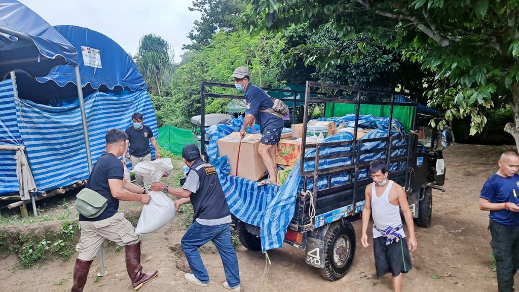 เจ้าคณะจังหวัดแม่ฮ่องสอน นำคณะสงฆ์ มอบข้าวของเครื่องใช้ ที่จำเป็น ให้กับผู้ลี้ภัยจากการสู้รบ ที่ศูนย์พักพิงชั่วคราว บ้านพะแข่ อำเภอขุนยวม