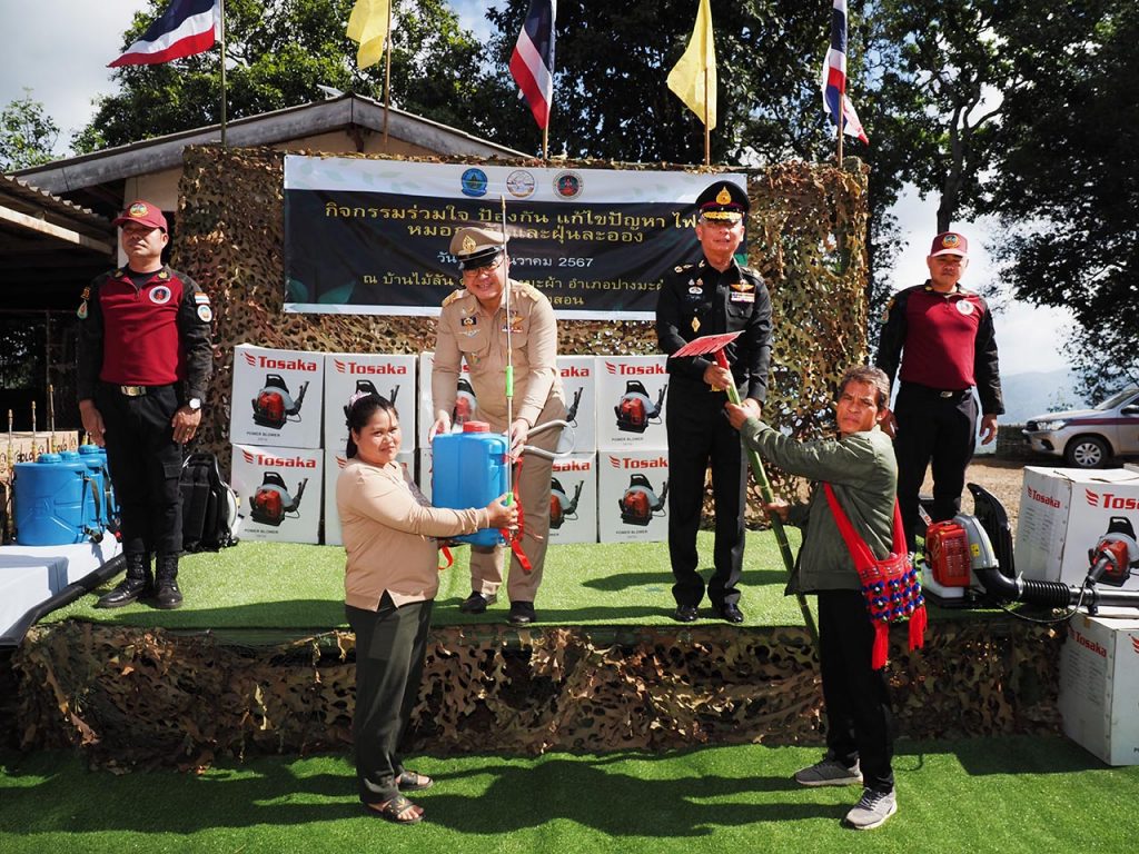 20 ธ.ค. 67 นายชูชีพ พงษ์ไชย ผู้ว่าราชการจังหวัดแม่ฮ่องสอน เป็นประธานเปิดกิจกรรม ร่วมใจป้องกันแก้ไขปัญหาไฟป่าหมอกควัน และฝุ่นละออง โดยมี พลตรี ไมตรี ชูปรีชา ผู้บัญชาการกองกำลังนเรศวร ร่วมเป็นเกียรติ พร้อมด้วยหัวหน้าส่วนราชการ นายอำเภอปางมะผ้า ผู้บริหารองค์กรปกครองส่วนท้องถิ่น กำนัน ผู้ใหญ่บ้าน และชาวบ้านไม้ลัน ร่วมกิจกรรมเพื่อรณรงค์ประชาสัมพันธ์การป้องกันและแก้ไขปัญหาไฟป่า หมอกควัน และฝุ่นละออง สร้างความตระหนักและกระตุ้นให้ประชาชน หน่วยงาน/องค์กร ทั้งภาครัฐ ภาคเอกชน มีจิตสำนึกหวงแหนทรัพยากรธรรมชาติและป่าไม้ และตระหนักถึงพิษภัยของไฟป่า หมอกควัน ฝุ่นละออง และปัญหามลพิษทางอากาศจาก PM 2.5 และส่งเสริมการมีส่วนร่วมของทุกภาคส่วนในการเฝ้าระวัง ป้องกัน และแก้ไขปัญหาไฟป่า หมอกควัน และฝุ่นละอองอย่างยั่งยืน ผ่านการพัฒนาด้านการเกษตร และการบริหารจัดการ การใช้ประโยชน์ในพื้นที่ป่าตามแนวทางพระราชดำริ