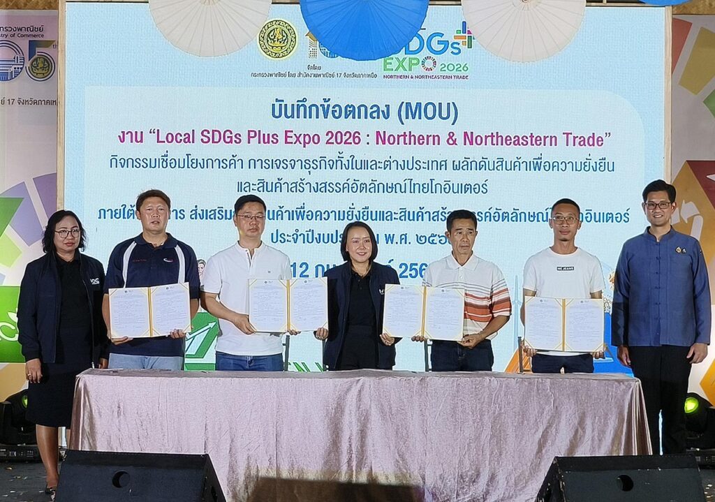 วันที่ 12 กุมภาพันธ์ 2569 กระทรวงพาณิชย์ ร่วมกับผู้ประกอบการจากภาคเหนือ 17 จังหวัด และภาคตะวันออกเฉียงเหนือ 20 จังหวัด จัดงาน “LOCAL SDGS EXPO 2026: Northern & Northeastern Trade” ระหว่างวันที่ 11–15 กุมภาพันธ์ 2569 ณ ลานกิจกรรมหน้าศูนย์การค้าเซ็นทรัลเชียงใหม่ โดยมี ร้อยตรี จักรา ยอดมณี รองปลัดกระทรวงพาณิชย์ นายบุญลือ ธรรมธรานุรักษ์ รองผู้ว่าราชการจังหวัดเชียงใหม่ และแขกผู้มีเกียรติร่วมเปิดงาน