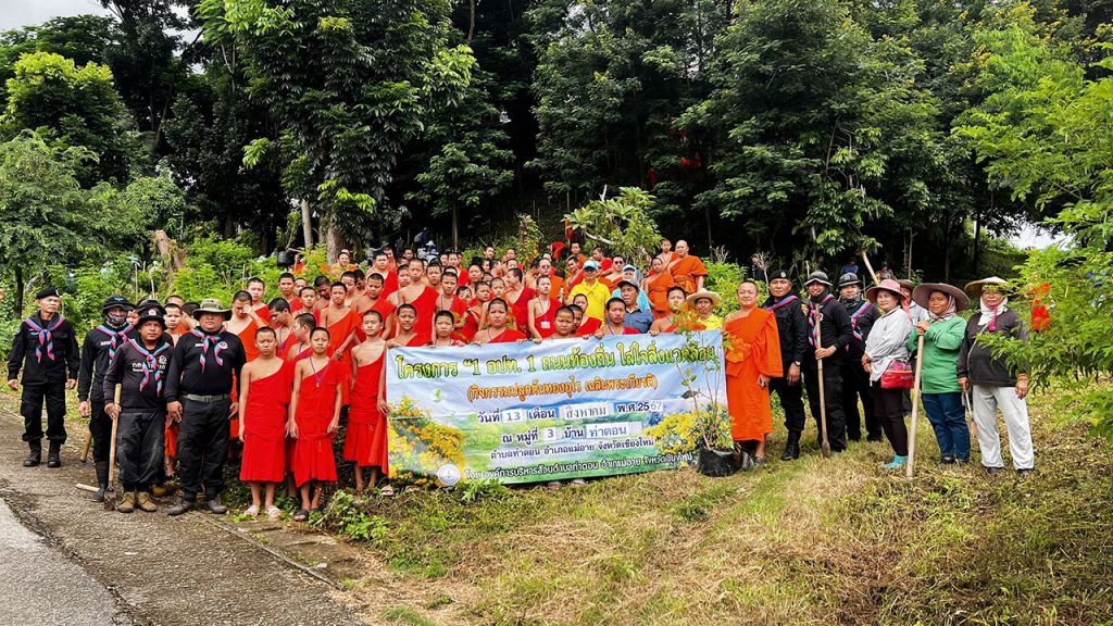โดยมีกล้าไม้ ทองอุไร 500 ต้น และพญาเสือโคร่ง จำนวน 500 ต้น รวมกล้าไม้ทั้งหมด 1,000 ต้น มีพื้นที่ปลูกประมาณ2 ไร่ ณ บริเวณสวนป่า วัดท่าตอนพระอารามหลวง ตำบลท่าตอน อำเภอแม่อาย จังหวัดเชียงใหม่ การปลูกต้นไม่คืนสู่ป่าด้วยความเรียบร้อย