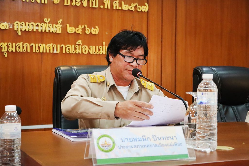 นายกฯ แม่เหียะ แถลงผลงานต่อสภาฯ พร้อมรายงานผลการติดตามและประเมินผลแผนพัฒนาเทศบาลฯ มีความพึงพอใจของประชาชนอยู่ในระดับดีมาก