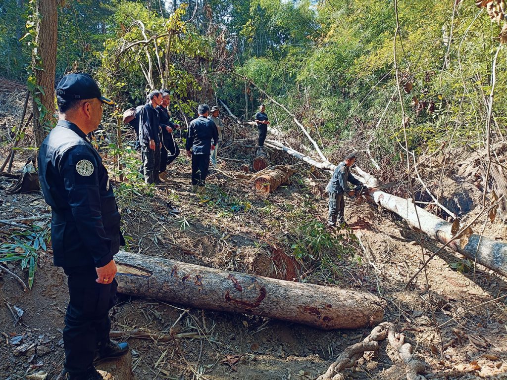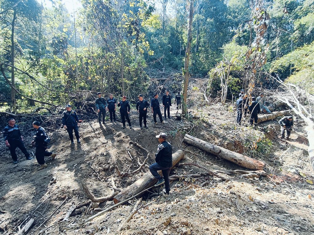 ผอ.ส่วนป้องกันฯ .สจป.1 แม่ฮ่องสอน สนธิกำลังร่วม สบอ.16 สาขาแม่สะเรียง หน่วยงานที่เกี่ยวข้องตรวจยึดไม้ประดู่ เตรียม ลอกลายตอพิสูจน์ ขยายผลคดีไม้ประดู่ฝังดิน