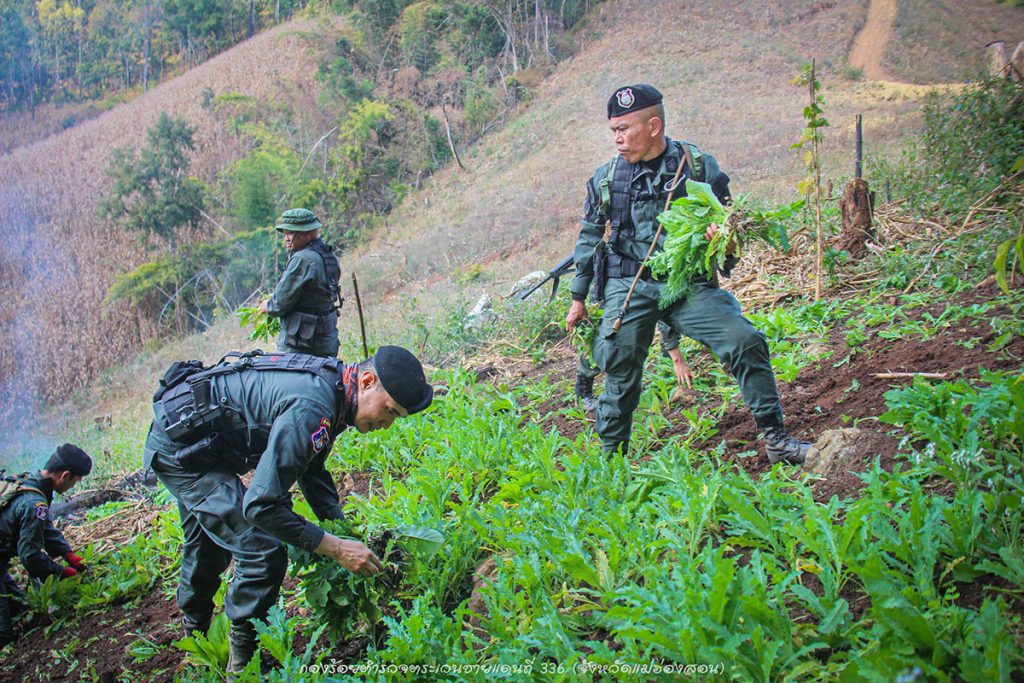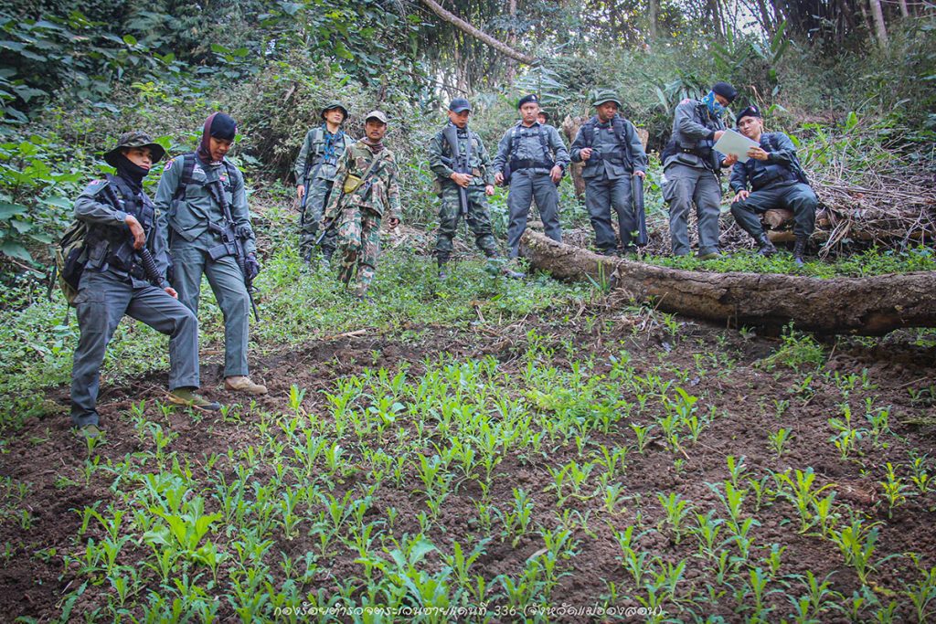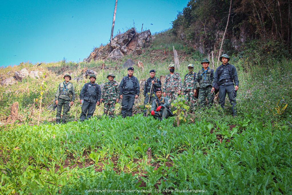 ร้อย ร.723 ตชด.336 นำกำลังเข้าตัดฟันทำลายไร่ฝิ่น 9 แปลง และพบพื้นที่ป่าถูกบุกรุกแพ้วถางกว่า 3 ไร่