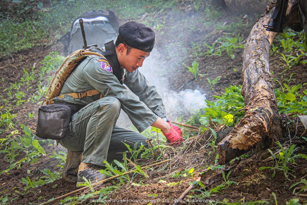 วันที่ 28 มกราคม 2567 พ.ต.ท.ธวัชชัย สุรินต๊ะ ผบ.ร้อย ตชด.336 ได้รับการประสานข้อมูลจากสถาบันสํารวจและติดตามการปลูกพืชเสพติด (สพส.) ว่าพบ ได้มีผู้ลักลอบทำไร่ปลูกฝิ่นในพื้นที่ป่าสงวนแห่งชาติป่าห้วยน้ำดัง จึงสั่งการให้ ร.ต.อ.สำเริง ชำนาญ รอง ผบ.ร้อย ตชด.337 ได้สนธิกำลังร่วมกับ เจ้าหน้าที่อุทยานแห่งชาติห้วยน้ำดัง และเจ้าหน้าที่ทหาร ร้อย ร.723 (ฉก.สิงหนาท) นำกำลังกว่า 20 นาย ได้ทำการออกเดินลาดตระเวนเข้าตรวจสอบเป้าหมายในพื้นที่รอยต่อระหว่างประเทศไทย และเมียนมา ซึ่งเป็นป่าเขาสูงชันในเขตบ้านผีลู หมู่ที่ 9 ต.แม่นาเติง อ.ปาย จ.แม่ฮ่องสอน