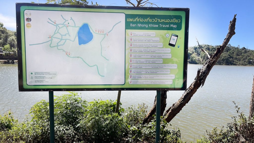 สิ่งอำนวยความสะดวก ระบบไฟฟ้าเข้าถึง มีที่พักแบบโฮมสเตย์ – โฮมลอดจ์ 3 แห่ง ได้แก่ ยาแอะนา โฮมสเตย์ มีห้องพักที่จำลองบ้านชาวปกาเกอะญอ 2 หลัง 3 ห้อง ๆ ละประมาณ 400 บาท โทร. 08 5622 2728, 09 2723 4622 จุดกางเต๊นท์ ริมทะเลสายหนองเขียว โทร. 08 9854 3587, 06 3685 4403 พินนะดำ โฮมสเตย์ มีห้องพัก 3 ห้อง ๆ ละประมาณ 600 บาท โทร. 09 7976 1531 มีจักรยาน บริการนักท่องเที่ยว 10 คัน บริการร้านอาหารในชุมชน ก๋วยเตี๋ยว ข้าวซอย กาฟ