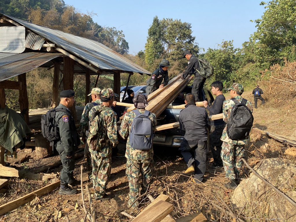ก่อนหน้านั้นเจ้าหน้าที่ได้รับแจ้งจากราษฎรในพื้นที่ ว่ามีกลุ่มบุคคลในหมู่บ้านห้วยโป่งกานนอก ได้ลักลอบตัดโค่น ไม้สักทอง และแปรรูป เพื่อนำไปสร้างบ้านพักที่อยู่อาศัยและขายให้กลุ่มบุคคลที่ประกอบเฟอร์นิเจอร์ จึงได้ตรวจสอบหาข่าว จนนำไปสู่การยึดของกลางดังกล่าวได้ในวันนี้ ส่วนผู้กระทำผิด ได้หลบหนีไปก่อนที่เจ้าหน้าที่จะไปถึงจุดเกิดเหตุ