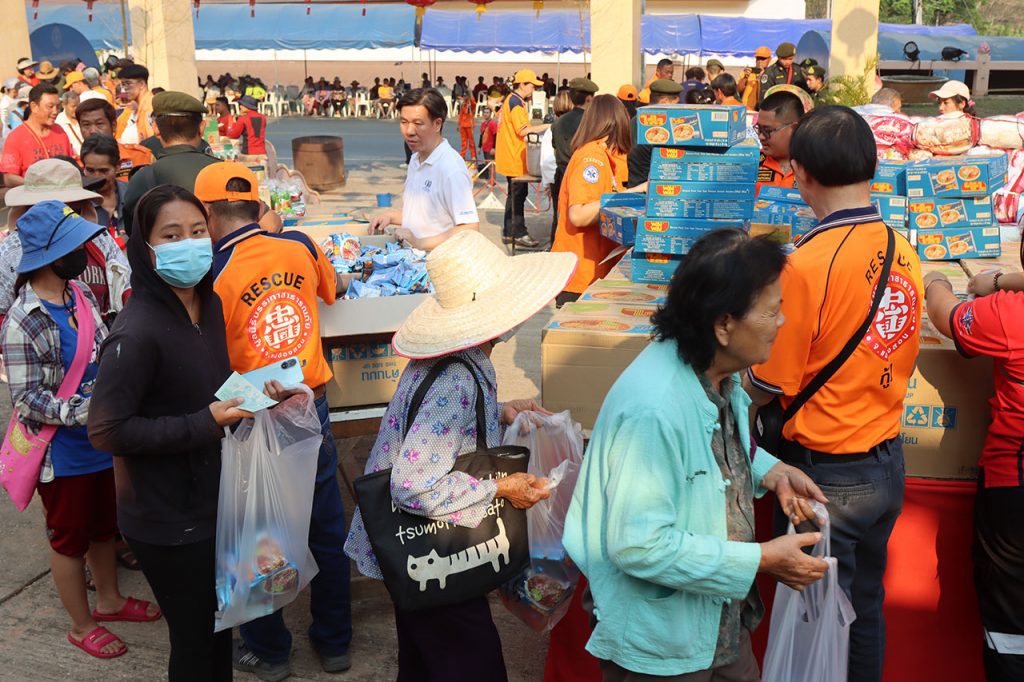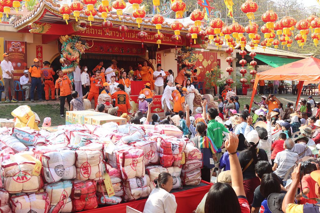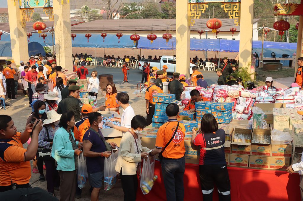 มูลนิธิบรรเทาสาธารณภัย จ.แม่ฮ่องสอน จัดเทกระจาด ฉลองเทวสถานวิหารเจ้าแม่กวนอิม แจกสิ่งของเครื่องอุปโภคบริโภคให้ชาวบ้าน 500 ครอบครัว ครบรอบ 150 ปีจังหวัดแม่ฮ่องสอน