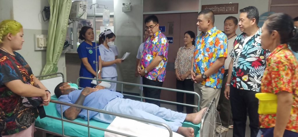 เวลา 15.30 น. ของวันที่ 15 เม.ย. 67 นายชูชีพ พงษ์ไชย ผวจ.แม่ฮ่องสอน พร้อมด้วย นายอุดมศักดิ์ ขาวหนูนา รอง ผวจ.แม่ฮ่องสอน นายสังคม คัดเชียงแสน นายอำเภอเมืองแม่ฮ่องสอน นางสาวมัลลิกา จีนาคำ นายกเทศมนตรีเมืองแม่ฮ่องสอน และ นายเรืองฤทธิ์ ผลดี หัวหน้าสำนักงานป้องกันและบรรเทาสาธารณภัย จ.แม่ฮ่องสอน ได้นำกระเช้าเยี่ยมปลอบขวัญและให้กำลังใจแก่นายอมร ปานเที่ยง อายุ 32 ปี หนึ่งในสองผู้ถูกลูกหลง จากเหตุการณึคนร้ายสาดยิงเข้าใส่งานวันสงกรานต์ถนนข้าวปุก บริเวณหน้าโรงแรมใบหยกซาเลต์ ถ.ขุนลุมประพาส ภายในเขตเทศบาลเมืองแม่ฮ่องสอน ซึ่งนายอมรถูกยิงเข้าที่บริเวณหัวเข่าด้านขวา ได้รับบาดเจ็บไม่มาก แพทย์ทำการผ่าตัด นอนรักษาตัวอีกไม่กี่วันก็คงกลับบ้านได้ โดยนายอมร เล่าว่า ตนเองถูกยิงหลังงานแสดงดนตรีที่ถนนข้าวปุกเลิก กำลังเดินออกจากงานพร้อมผู้คนจำนวนมากเพื่อที่จะกลับบ้าน จากนั้นไม่นานก็มีเสียงปืนดังขึ้นประมาณ 3 นัด และตนเองก็โดยลูกหลงเข้าบริเวณที่หัวเข่าด้านขวาจนล้มฟุบลง จากนั้นไม่นานก็มีรถกู้ชีพของโรงพยาบาลศรีสังวาลมารับตัว