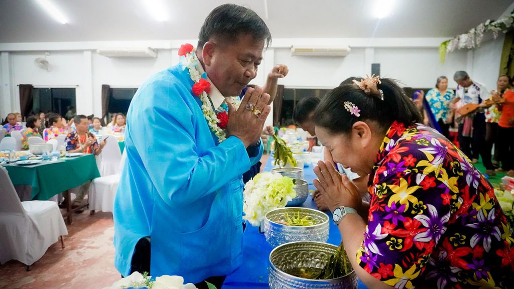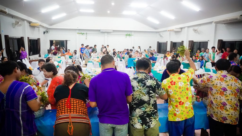 กั่นตอ (ขอขมา) รดน้ำดำหัวกำนันตำบลผาบ่อง ผู้นำชุมชน ทั้ง 12 หมู่บ้าน ของตำบลผาบ่อง เข้ากั่นตอ