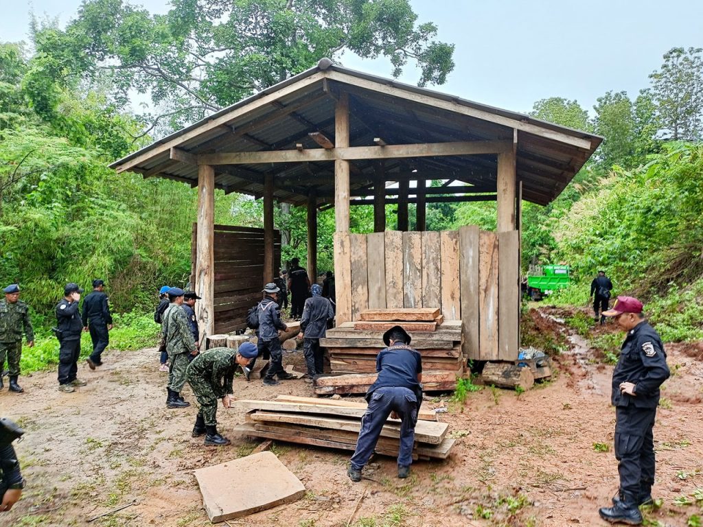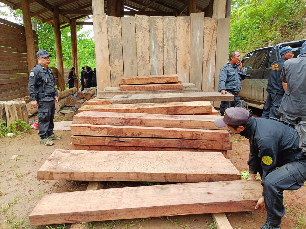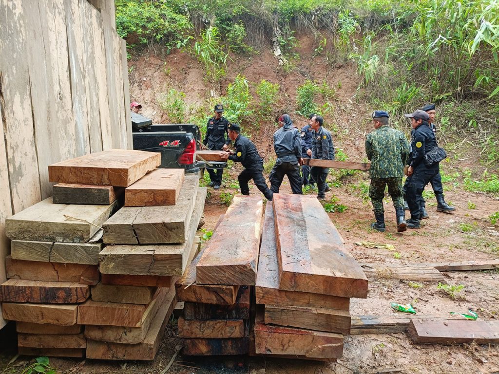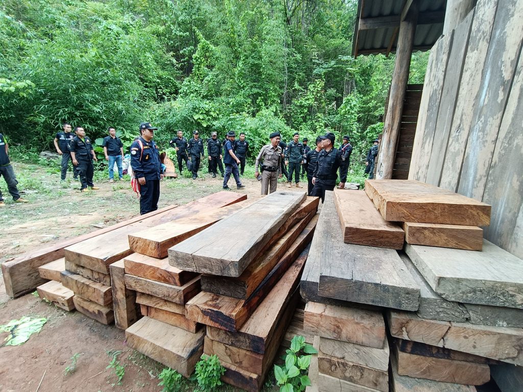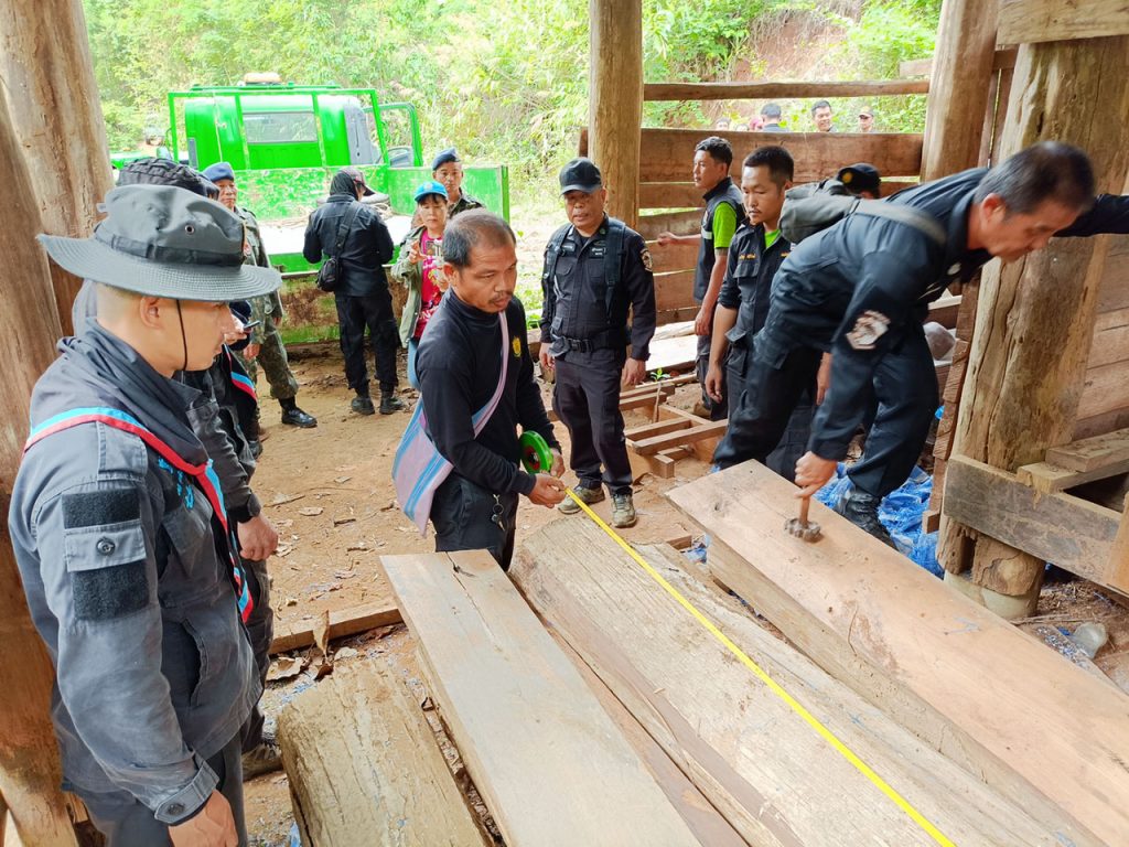 วันที่ 2 มิถุนายน 2567 ที่บ้านแม่แลบ ต.ท่าผาปุ้ม อ.แม่ลาน้อย จ.แม่ฮ่องสอน เจ้าหน้าที่สนธิกำลังเข้าร่วมดำเนินการตรวจยึดไม้แปรรูป ไม้สักท่อน เป็นจำนวนมาก โดย สำนักจัดการทรัพยากรป่าไม้ที่ 1 สาขาแม่ฮ่องสอน จากการอำนวยการของ นายเกษม คำมา ผอ.สจป.ที่. 1 สาขาแม่ฮ่องสอน ได้มอบหมายให้ นายสมจินต์ เนตรประดิษฐ ผอ.ส่วนป้องกันรักษาป่า และ นายอำนวย ยอดคำ หัวหน้าสายตรวจปราบปรามฯ สจป.ที่.1 สาขาแม่ฮ่องสอน สายที่ 2 นายปิยะนัฐ ปิ่นทกุล หน.หน่วยฯ มส.4 แม่ลาน้อย พร้อมทั้งเจ้าหน้าที่หน่วยฯ มส 5 แม่สะเรียง,มส.6 สบเมย ร่วมกับหน่วยเฉพาะกิจกรมทหารพรานที่ 36 , เจ้าหน้าที่ตำรวจ สภ.แม่ลาน้อย, เจ้าหน้าที่ตำรวจตระเวณชายแดน ที่ 337 และเจ้าหน้าที่ฝ่ายปกครอง (อส.) แม่ลาน้อย เข้าร่วมกันตรวจยึดจับกุมการกระทำผิดกฎหมายว่าด้วยการป่าไม้ตามแหล่งข่าวของหน่วยฯเพื่อสกัดกั้นขบวนการค้าไม้ประดู่ สำหรับไม้ประดู่แปรรูปที่ตรวจยึด มีขนาดแผ่นใหญ่ มีความกว้างและหนา เป็นไม้ออเดอร์ของตลาดต่างประเทศที่นายทุนจีนต้องการ