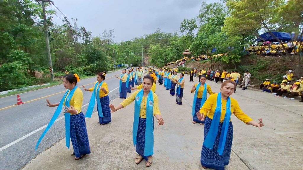 เดิน-วิ่งปั่น ธงตราสัญลักษณ์งานเฉลิมพระเกียรติพระบาทสมเด็จพระเจ้าอยู่หัวที่จังหวัดแม่ฮ่องสอน ใช้นางรำจำนวน 720 นาง รำไตฉลองต้อนรับยิ่งใหญ่