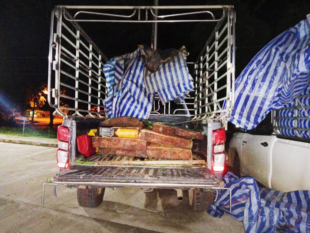 นายสมจินต์ เนตรประดิษฐ์ ผอ.สปฟ. เปิดเผยว่า ได้รับรายงานทางโทรศัพท์จาก นายอำนวย ยอดคำ.หัวหน้าหน่วยป้องกันรักษาป่าที่มส. 6 สบเมย รายงานการตรวจยึดจับกุมการลักลอบเคลื่อนย้ายไม้และมีไม้แปรรูป(ประดู่)ไว้ในครอบครองโดยผิดกฎหมาย เหตุเกิดบริเวณเส้นทางชนบทหมู่บ้านแม่คะตวน หมู่ที่ 2 ตำบลสบเมย อำเภอสบเมย จังหวัดแม่ฮ่องสอน จับกุมผู้ต้องหาชายได้ จำนวน 4 คน ภายในรถกระบะ ตรวจยึดไม้ประดู่แปรรูป จำนวน 25 แผ่น /เหลี่ยม ปริมาตร 2.48 ลบ.ม และตรวจยึดรถบรรทุก 4 ล้อ (ตู้ทึบ ) ซุกซ่อนอยู่ในท้ายกระบะพร้อมปกปิดอำพรางด้วยกระสอบข้าวเปลือกและเมล็ดพันธุ์พืชผัก จำนวน 2 คัน ดังนี้ 1. รถยนต์บรรทุก 4 ล้อ ยี่ห้อโตโยต้า ไฮลักลีโว่สีขาว หมายเลขทะเบียน ผข 3103 จันทบุรี 2.รถยนต์บรรทุก 4 ล้อ ยี่ห้ออีซูซู สีเทา หมายเลขทะเบียน บท.4247 เชียงใหม่