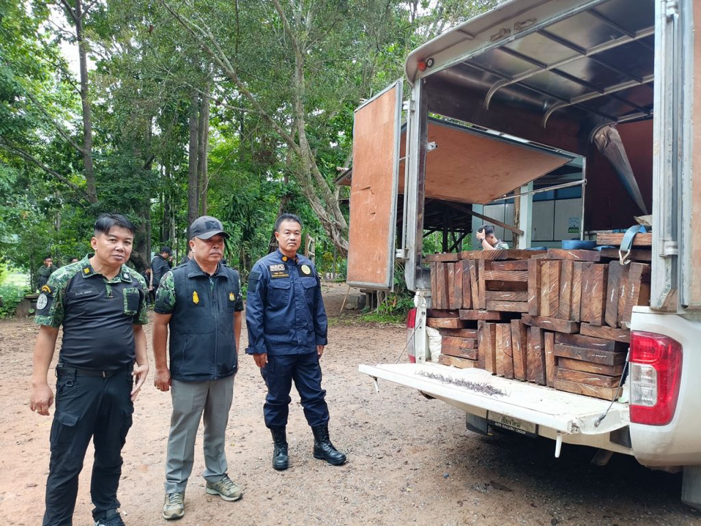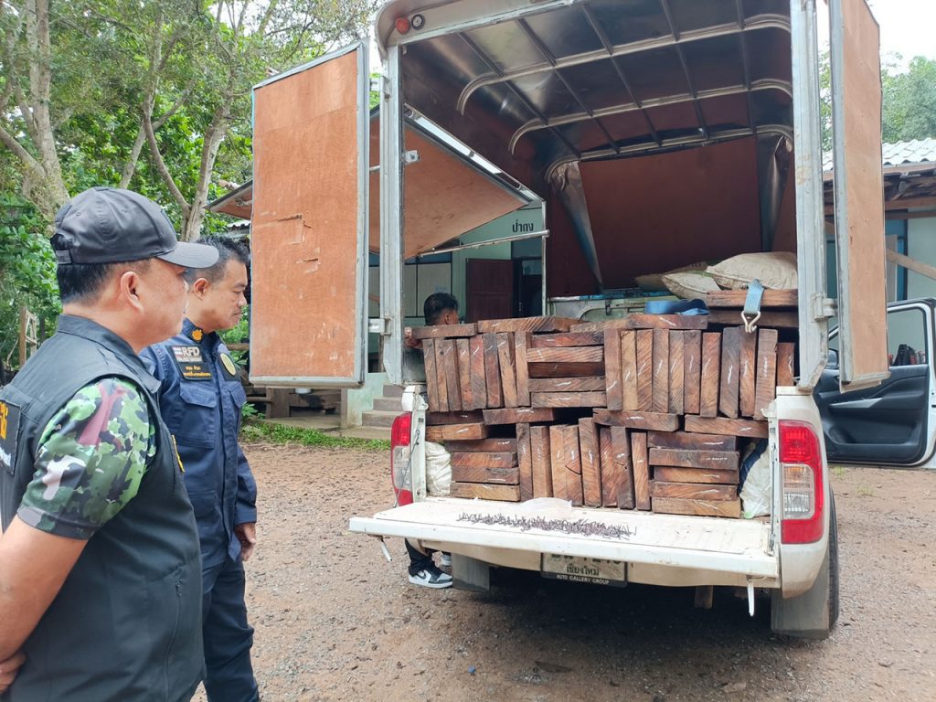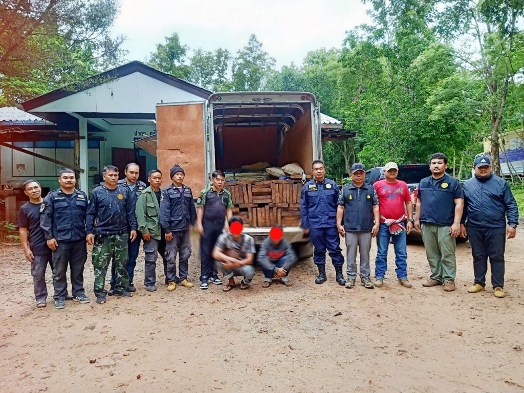 ต่อมาเวลา 04.00 น. ของเช้าวันนี้ ซึ่งได้ตรวจพบรถยนต์กระบะสีขาว หมายเลขทะเบียน ยน 7248 เชียงใหม่ เจ้าหน้าที่จึงได้แสดงตัวเข้าตรวจสอบ พบไม้สักแปรรูปจำนวนหนึ่งวางเรียงไว้ในรถพร้อมมีกระสอบแกลบปกปิด จึงควบคุมผู้ต้องหา จำนวน 2 คน ทราบชื่อคือ นายเดช อายุ 31 ปี คนขับ เป็นคน ตำบลกองก๋อย อำเภอสบเมย จังหวัดแม่ฮ่องสอน และ นายดวง อายุ 40 ปี เป็นคนพื้นเพตำบลนาเกียน อำเภออมก๋อย จังหวัดเชียงใหม่ ที่นั่งมากับรถ ซึ่งจากการตรวจนับไม้สักแปรรูปที่มีอยู่ในรถ รวม 77 แผ่น ปริมาตร 1.71 ลบ.ม ซึ่งเป็นการกระทำผิดต่อ พ.ร.บ.ป่าสงวนแห่งชาติ พ.ศ 2507 มาตรา 14 และกระทำผิด ต่อ พ.ร.บ.ป่าไม้ พุทธศักดิ์ราช 2484 มาตรา 48 มาตรา 74 และมาตรา 70