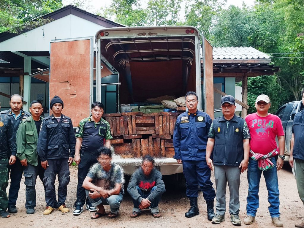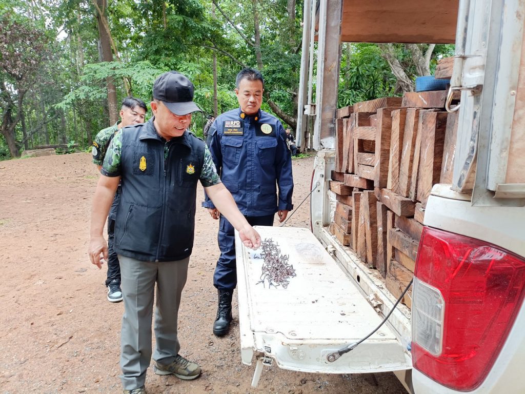 สจป.ที่.1 แม่ฮ่องสอน รวบ 2 ผู้ต้องหา ขับรถรับจ้างขนไม้สักแปรรูป สวมทะเบียนปลอม ยึดได้ไม้ ยาบ้า แถมตะปูเรือใบ โปรพิเศษไว้สกัดเจ้าหน้าที่